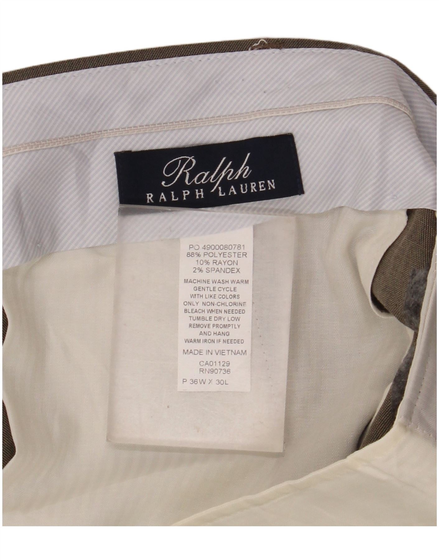 Pantaloni da abito dritti da uomo Ralph Lauren W36 L30 Poliestere beige