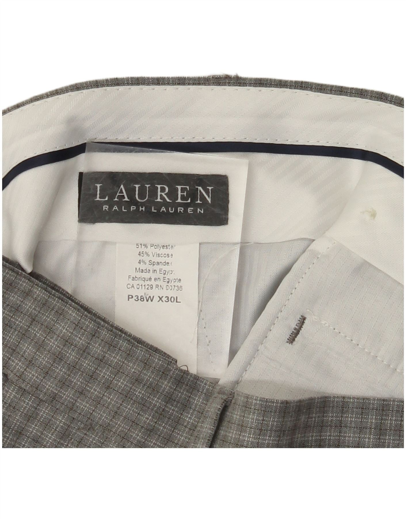 RALPH LAUREN Mens Straight Suit Trousers W38 L30 Grey Check Polyester