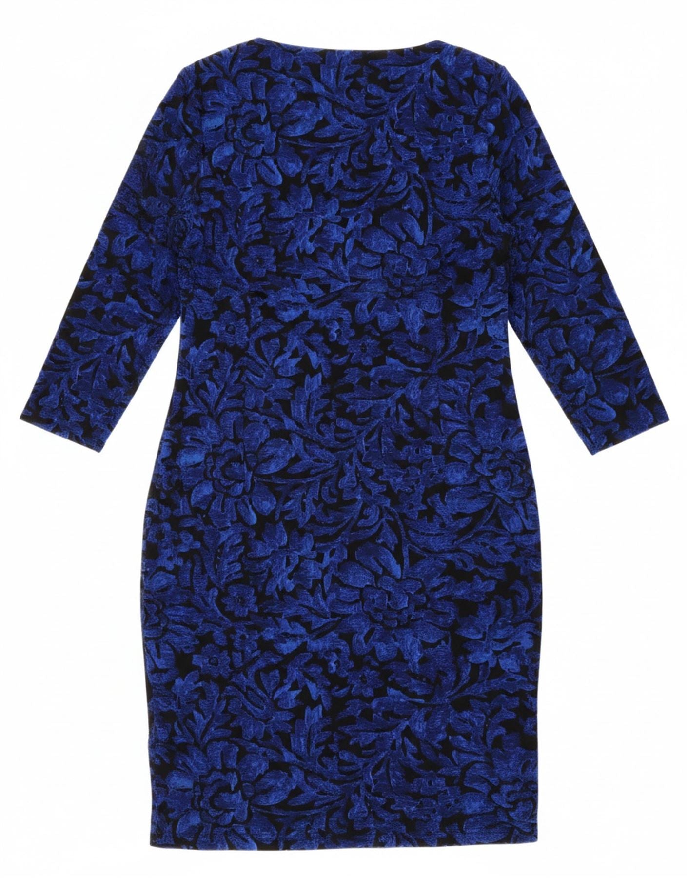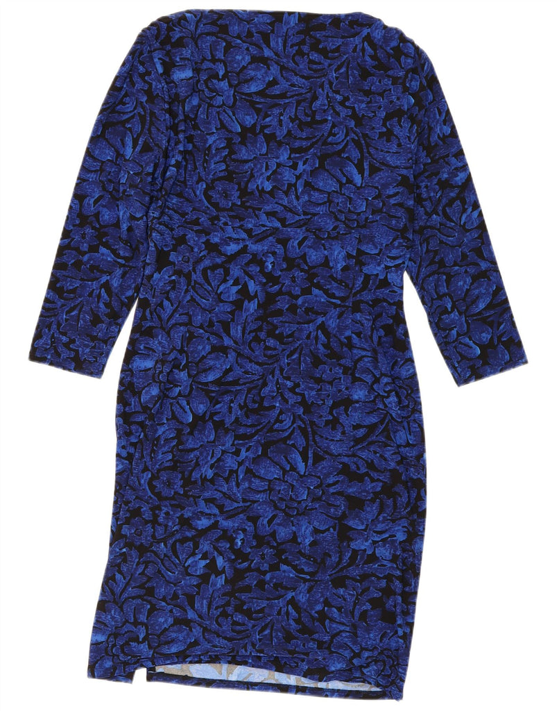 RALPH LAUREN Womens 3/4 Sleeve Sheath Dress US 14 XL Blue Floral Polyester