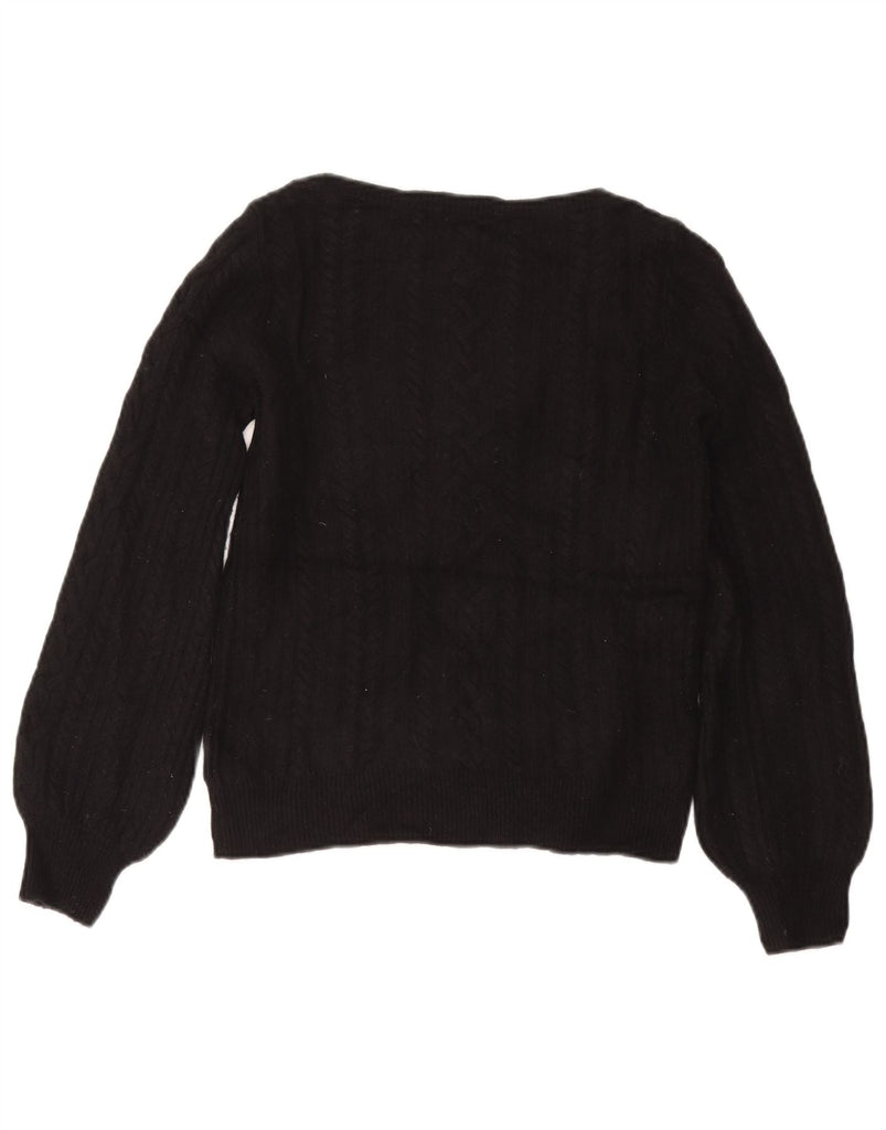 RALPH LAUREN Womens Boat Neck Jumper Sweater UK 14 Medium Black Wool