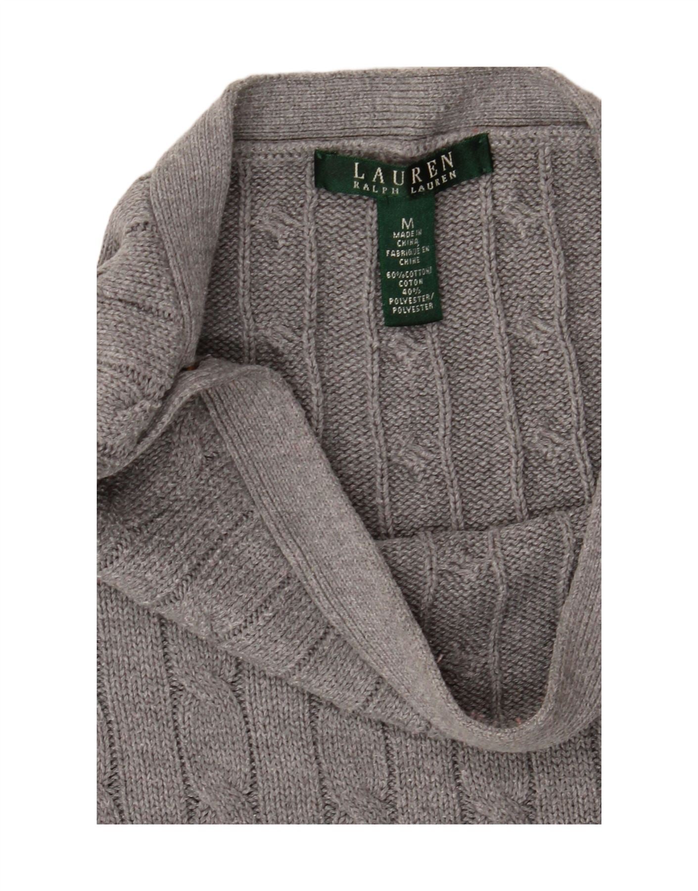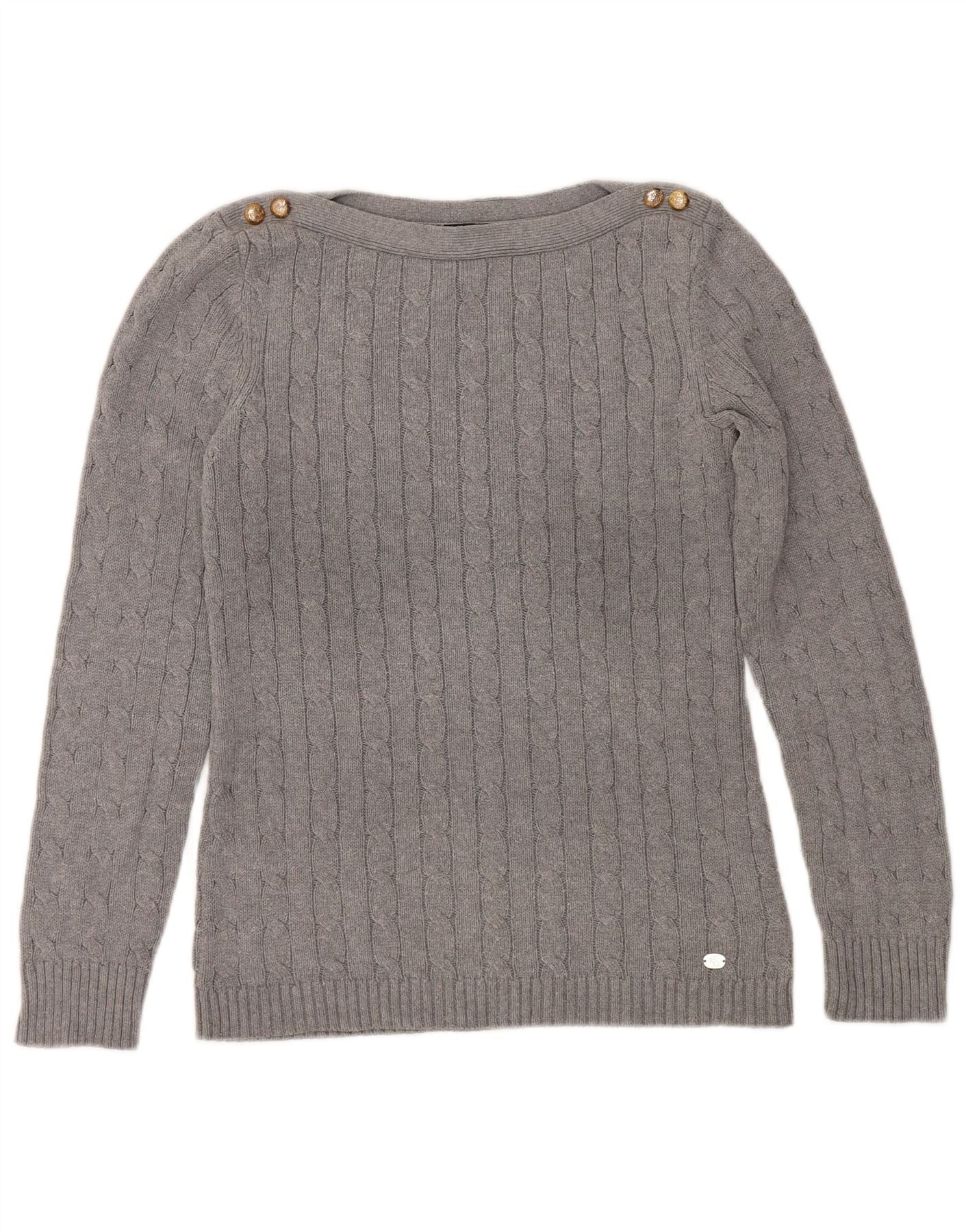 RALPH LAUREN Maglione da donna con scollo a barca UK 14 Cotone grigio medio