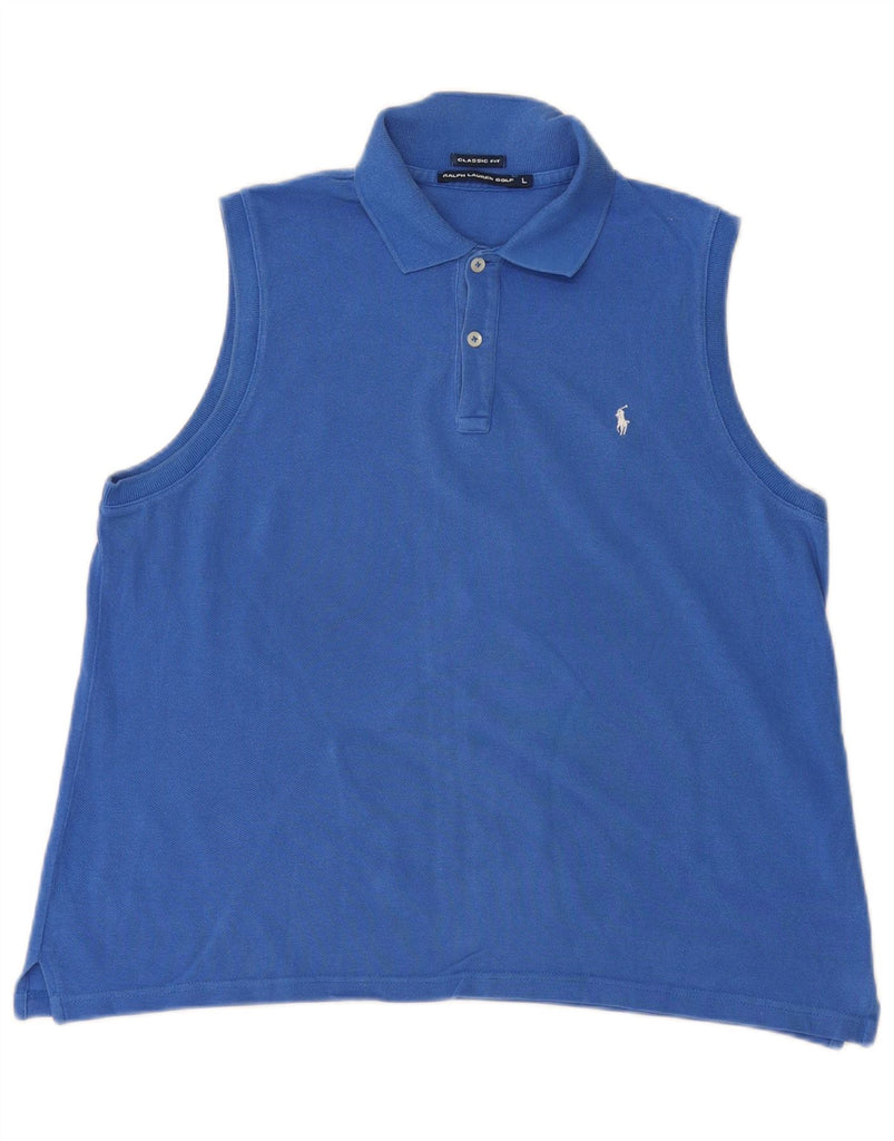 RALPH LAUREN Womens Classic Fit Sleeveless Polo Shirt UK 16 Large Blue
