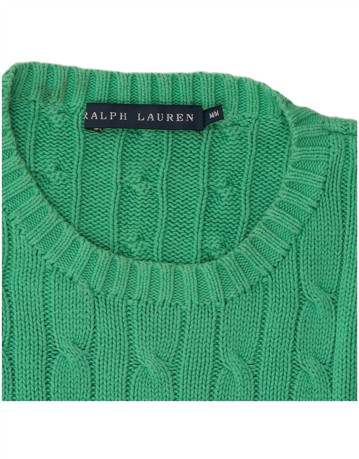 RALPH LAUREN Womens Crew Neck Jumper Sweater UK 14 Medium Green Cotton