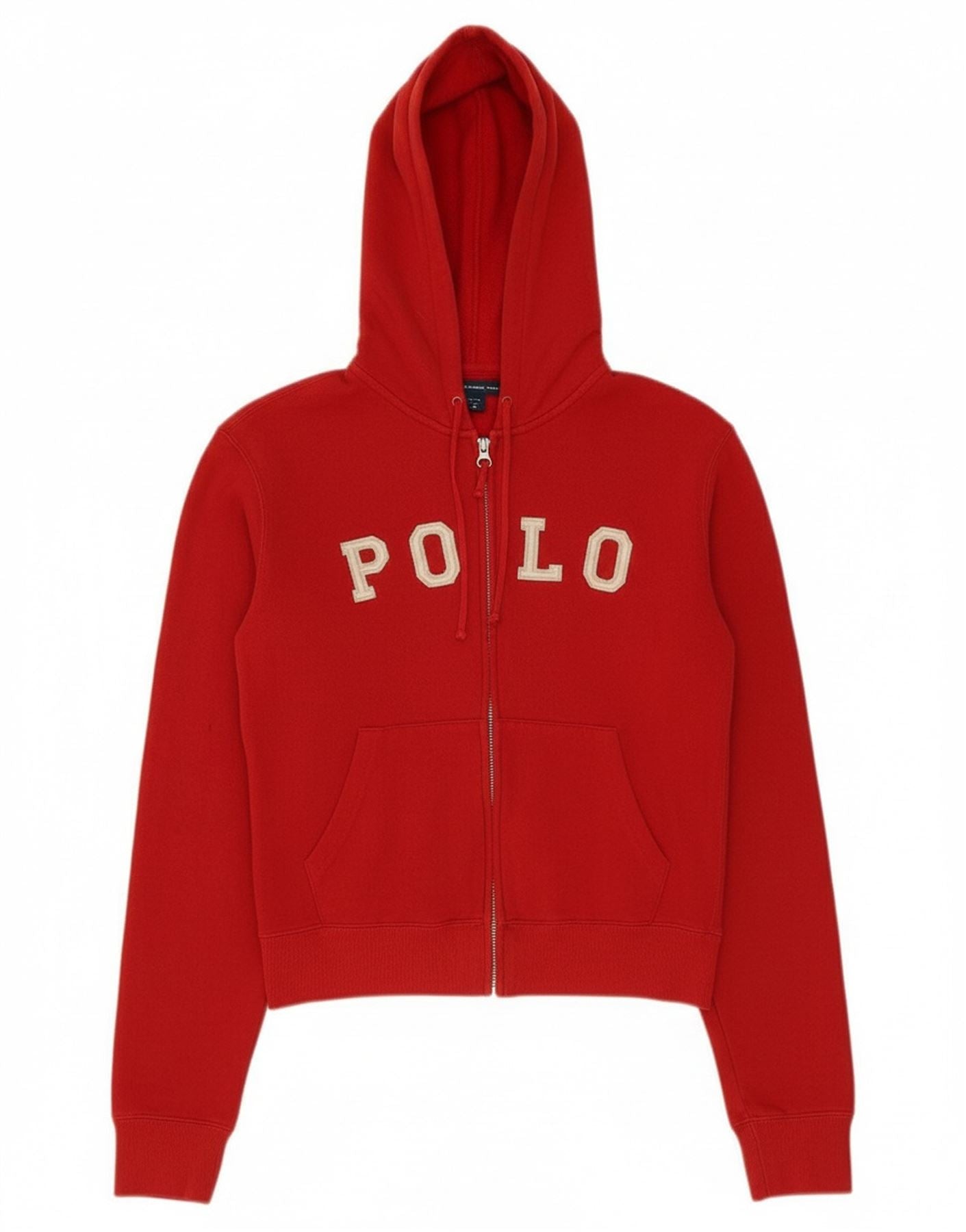 RALPH LAUREN Womens Crop Graphic Zip Hoodie Sweater UK 14 Medium Red