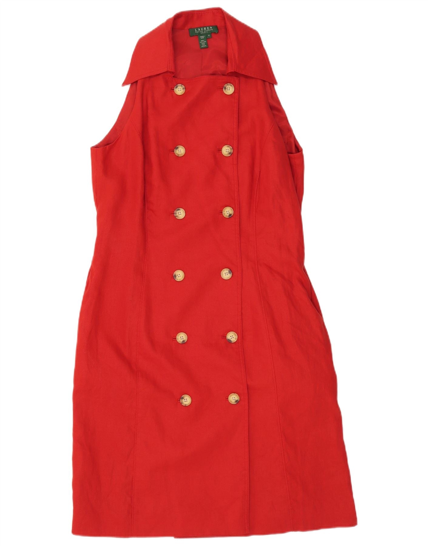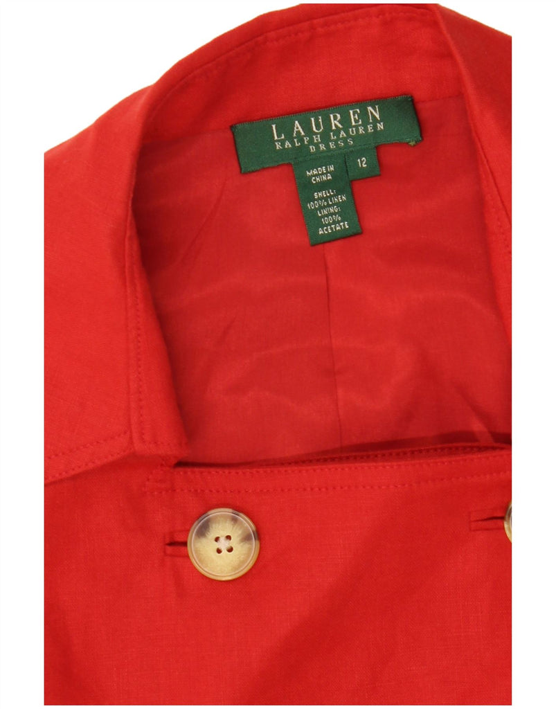 RALPH LAUREN Womens Double Breasted Halter Dress US 12 Large Red Linen