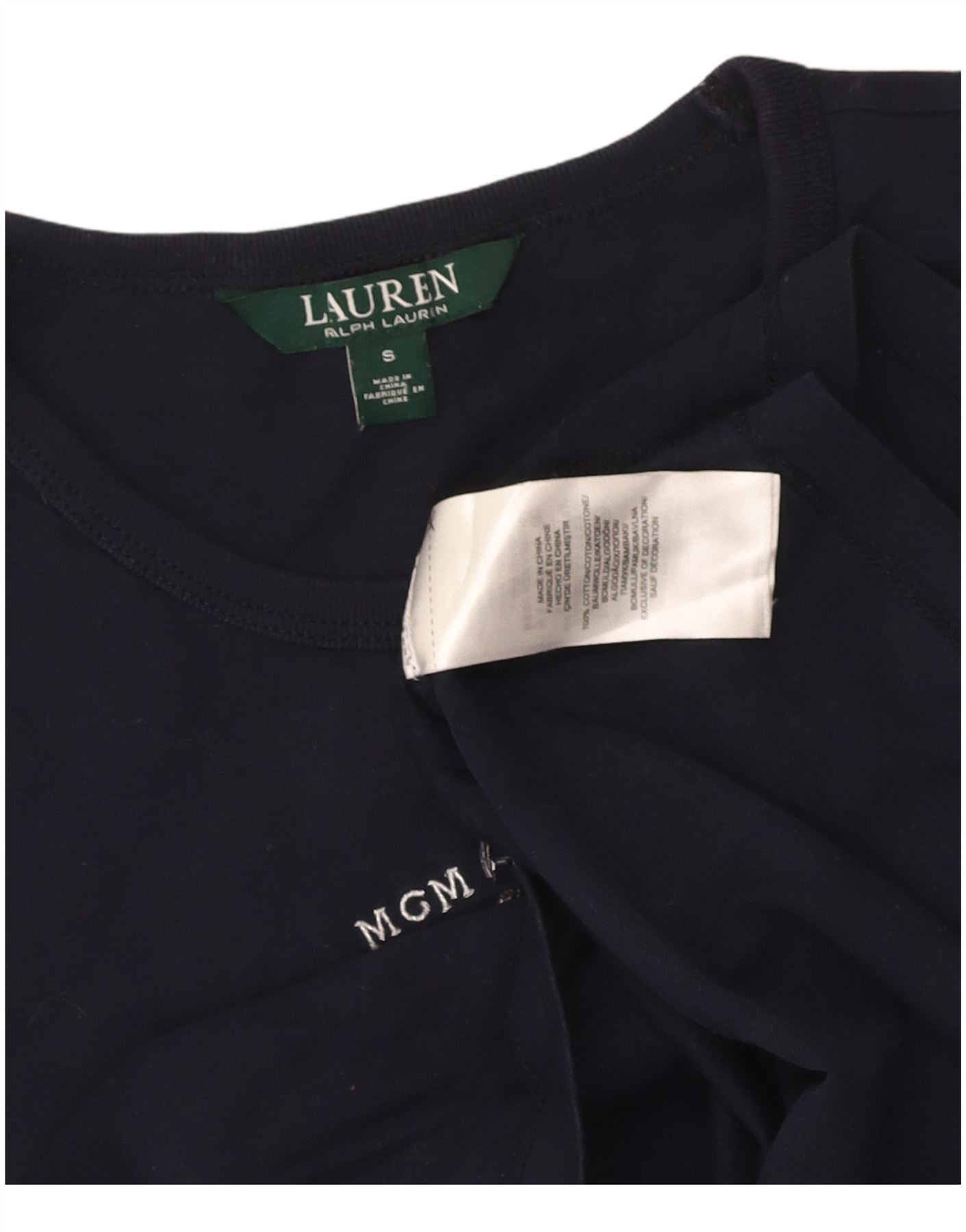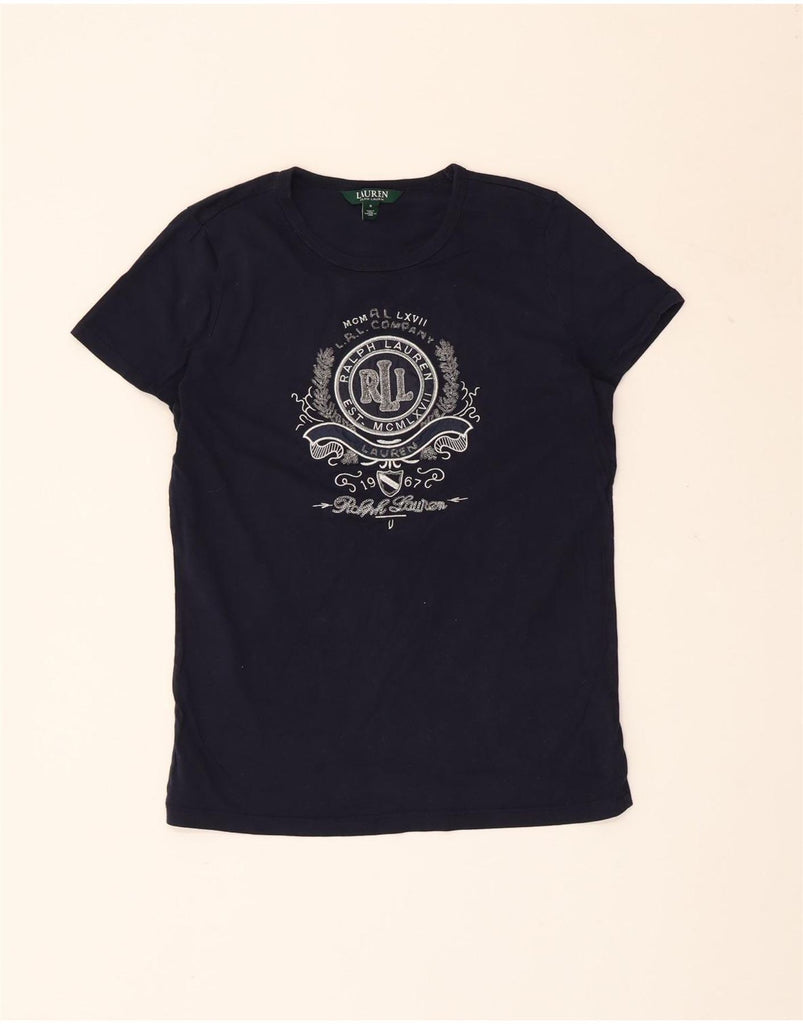 RALPH LAUREN Womens Graphic T-Shirt Top UK 10 Small Navy Blue Cotton