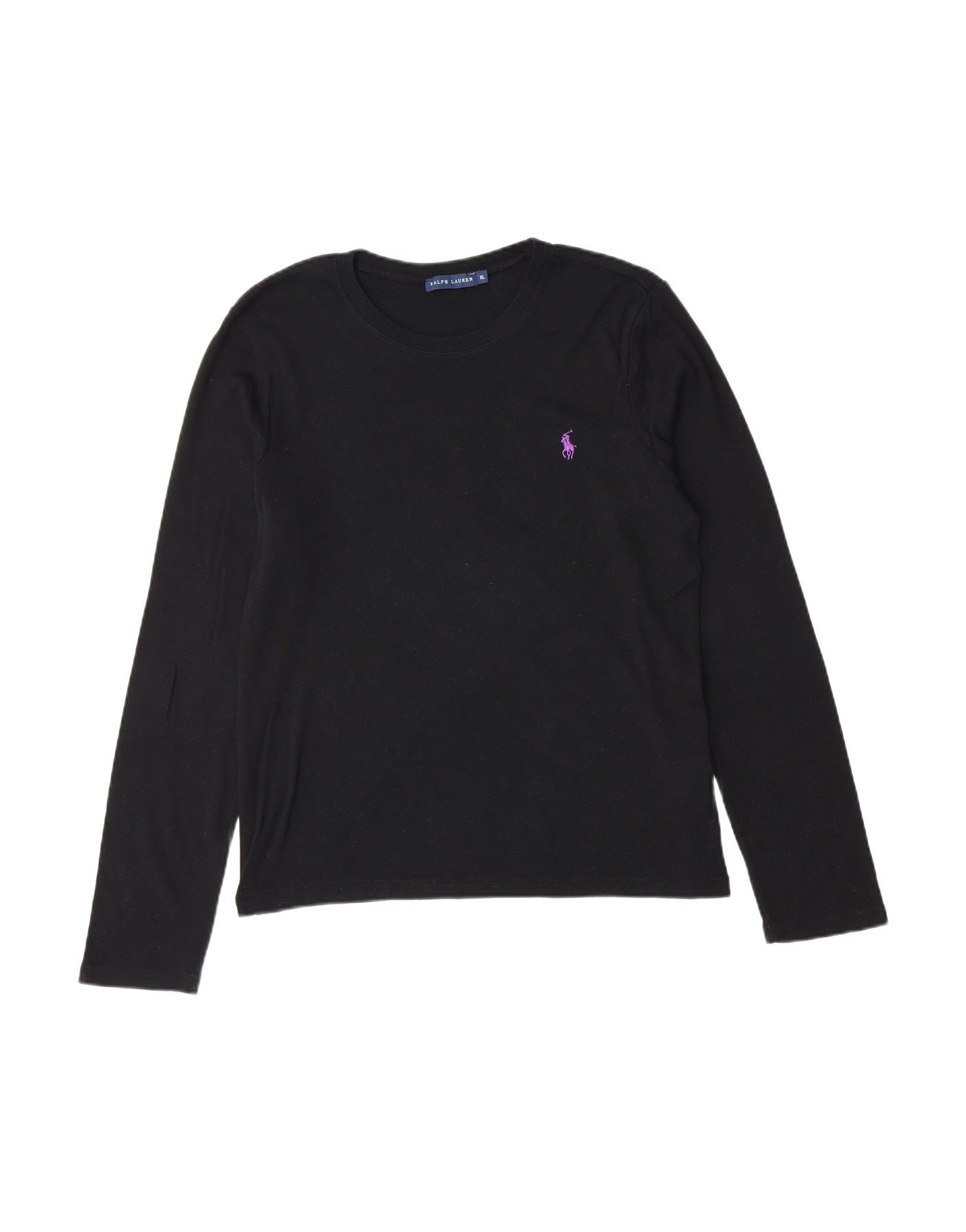 RALPH LAUREN Womens Graphic T-Shirt Top UK 18 XL Black Cotton Classic