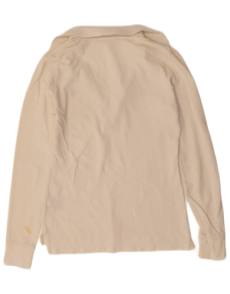 RALPH LAUREN Womens Long Sleeve Polo Shirt UK 10 Small Off White Cotton