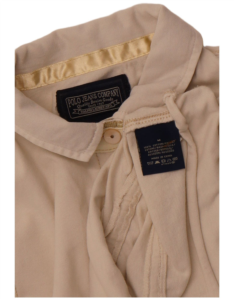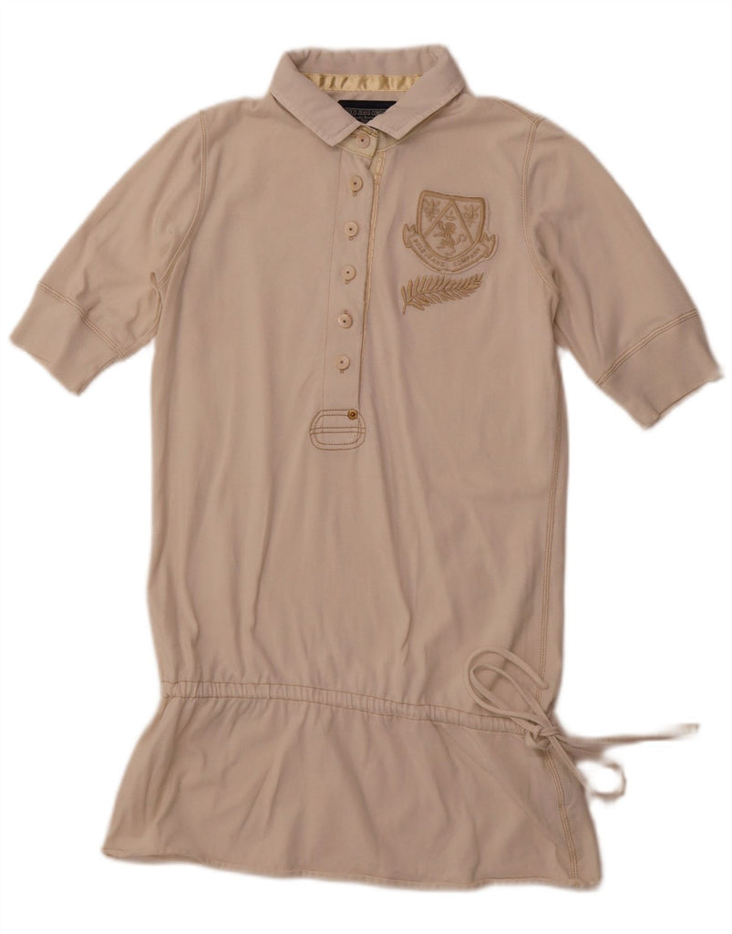 RALPH LAUREN Womens Longline Polo Shirt UK 12 Medium Off White Cotton