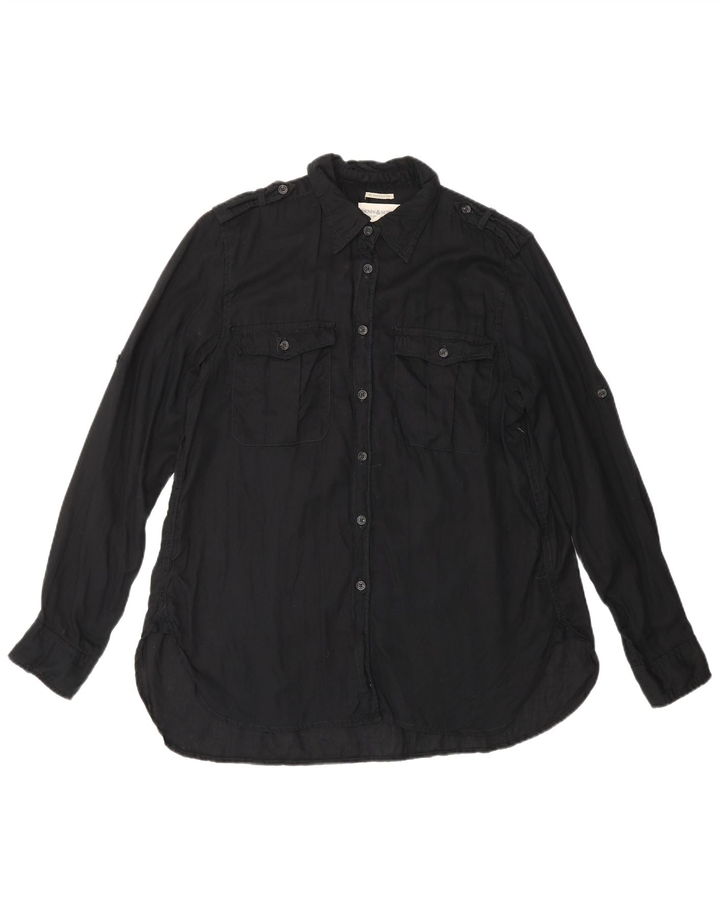 RALPH LAUREN Womens Military Denim Shirt UK 14 Medium Black Cotton