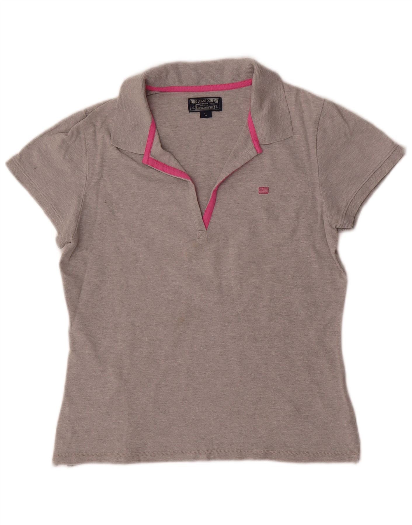 RALPH LAUREN Womens Polo Shirt UK 14 Large Grey Flecked Cotton