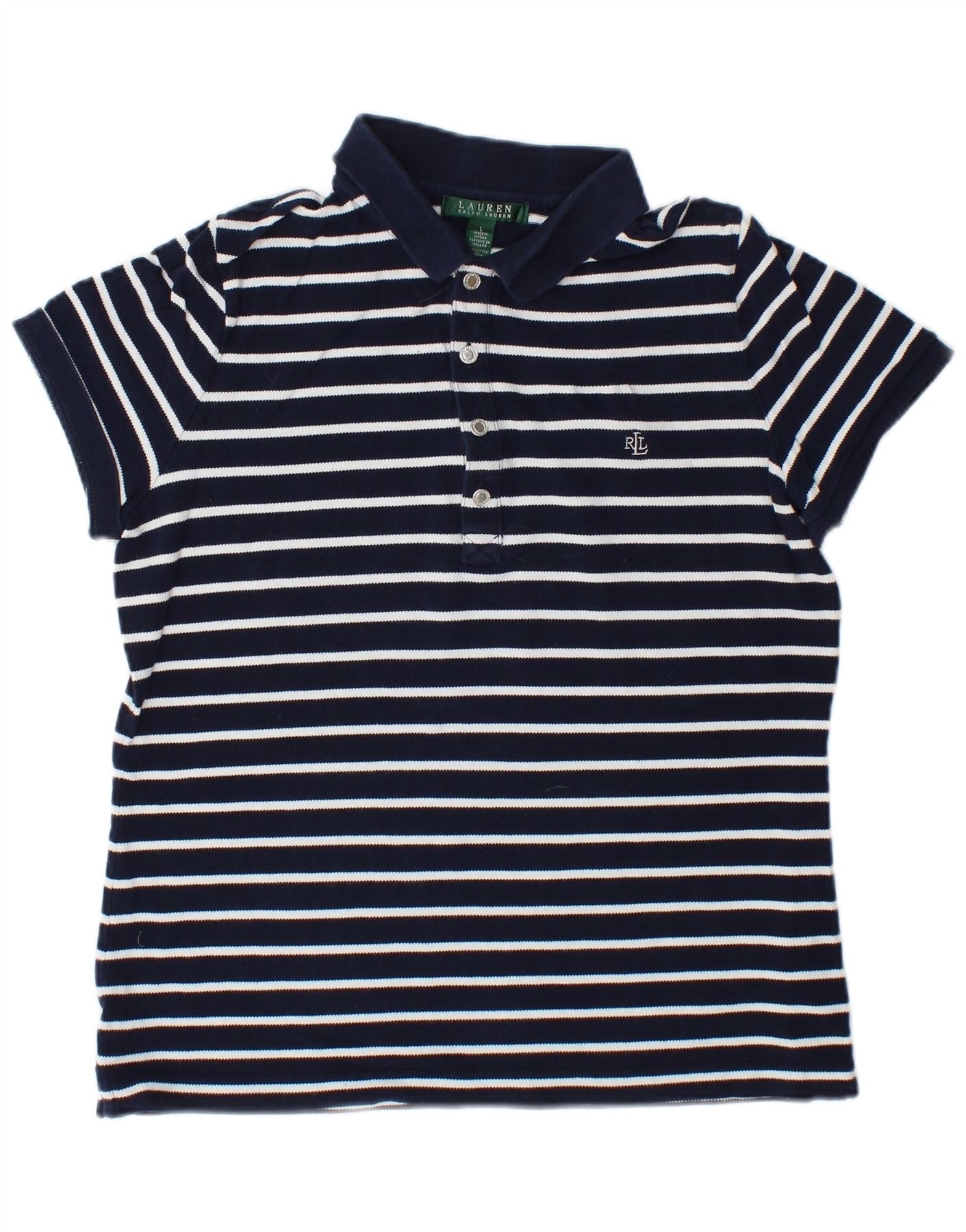 Polo da donna RALPH LAUREN UK 16 Large in cotone a righe blu navy