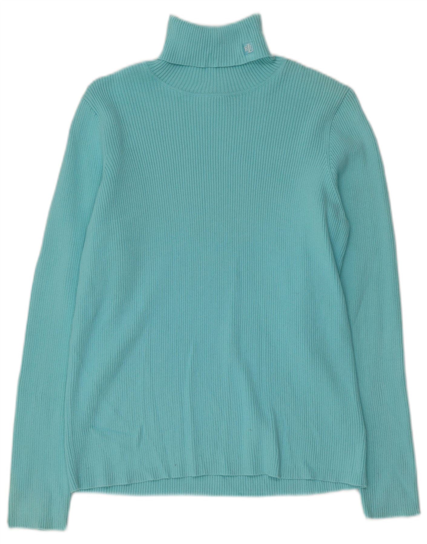 RALPH LAUREN Maglione maglione a collo alto da donna UK 14 Grande cotone blu