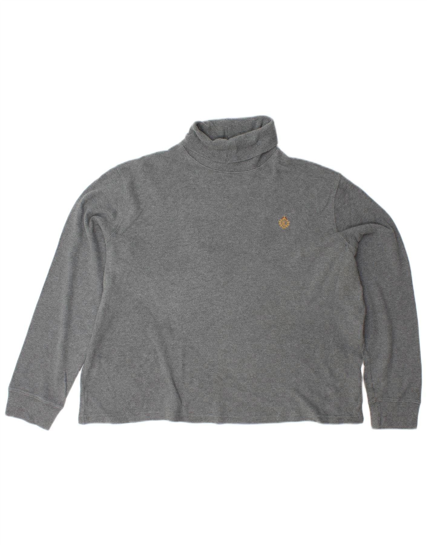 RALPH LAUREN Maglione maglione a collo alto da donna UK 18 XL Cotone grigio