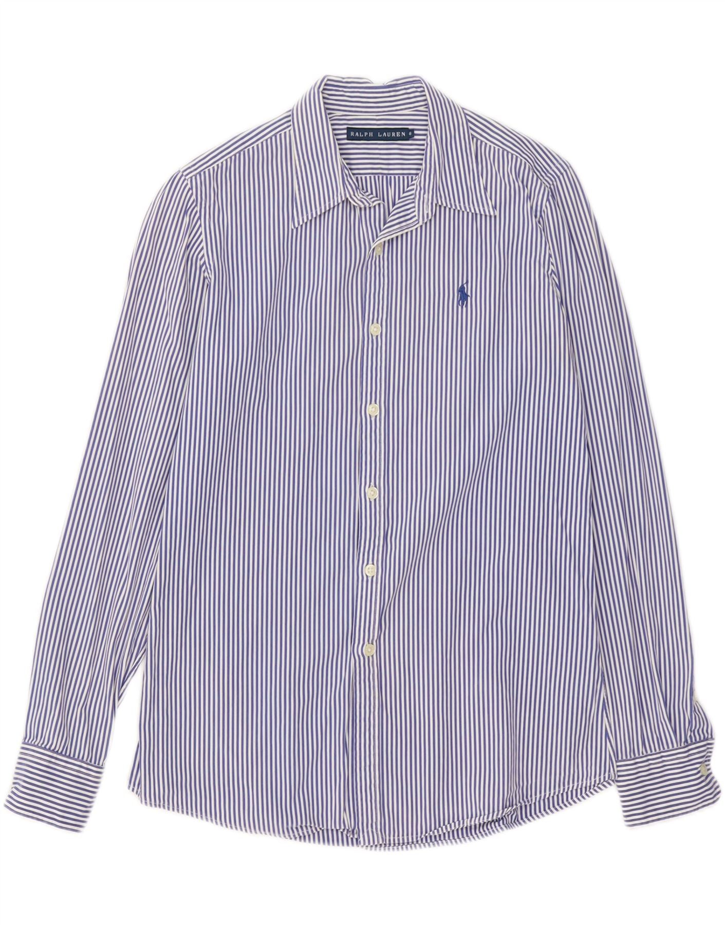 RALPH LAUREN Womens Shirt US 8 Medium Blue Striped Cotton