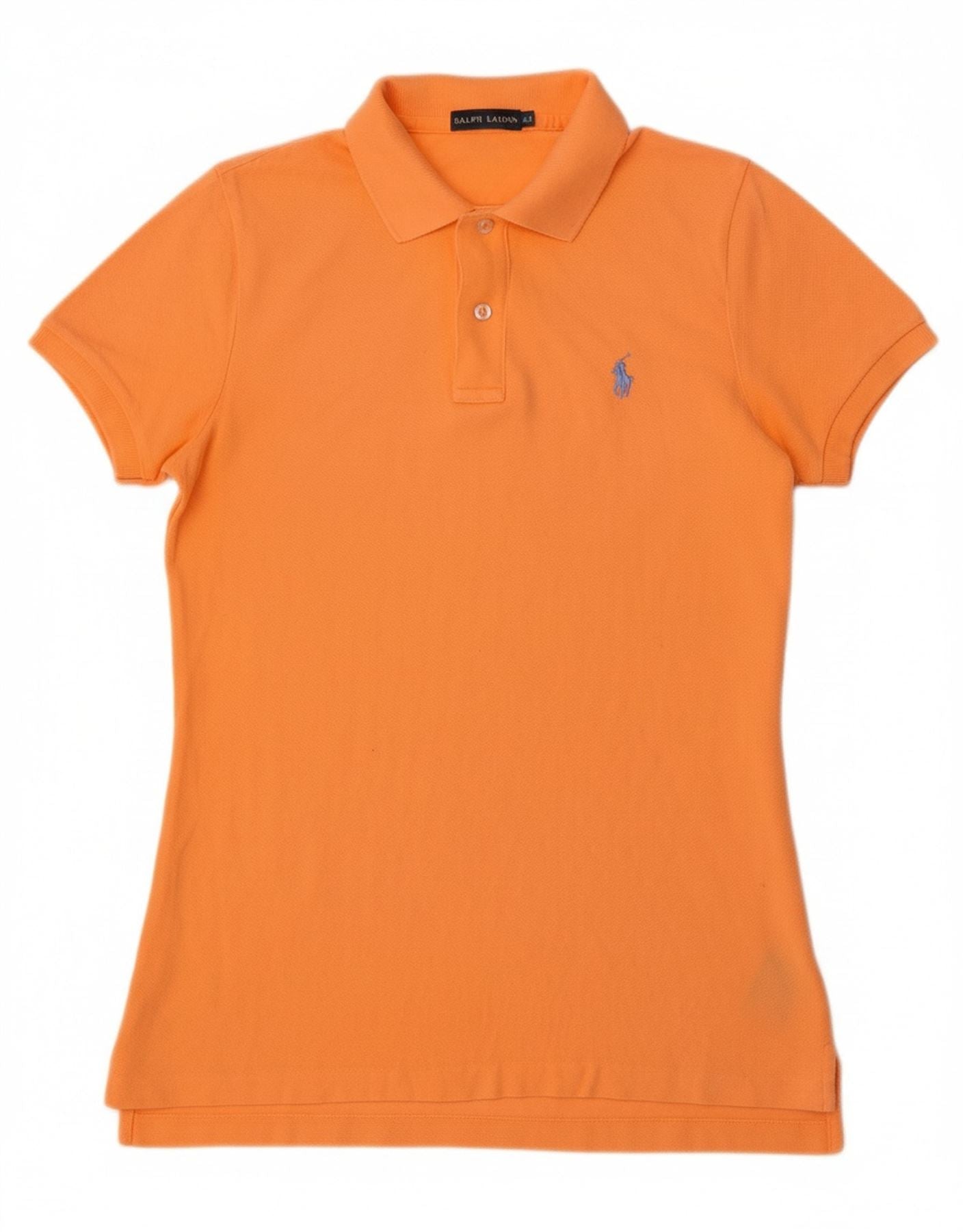 RALPH LAUREN Womens Skinny Polo Shirt UK 12 Medium Orange Cotton