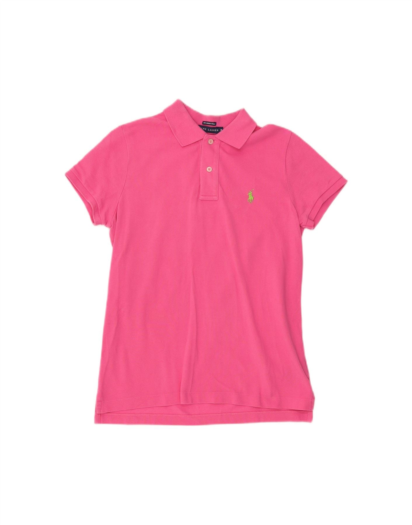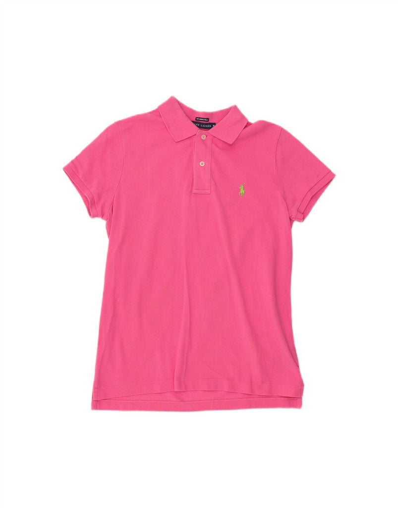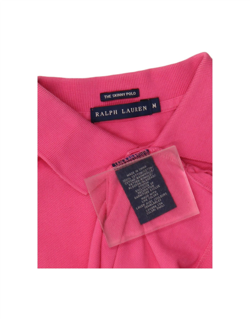 RALPH LAUREN Womens Skinny Polo Shirt UK 12 Medium Pink Cotton