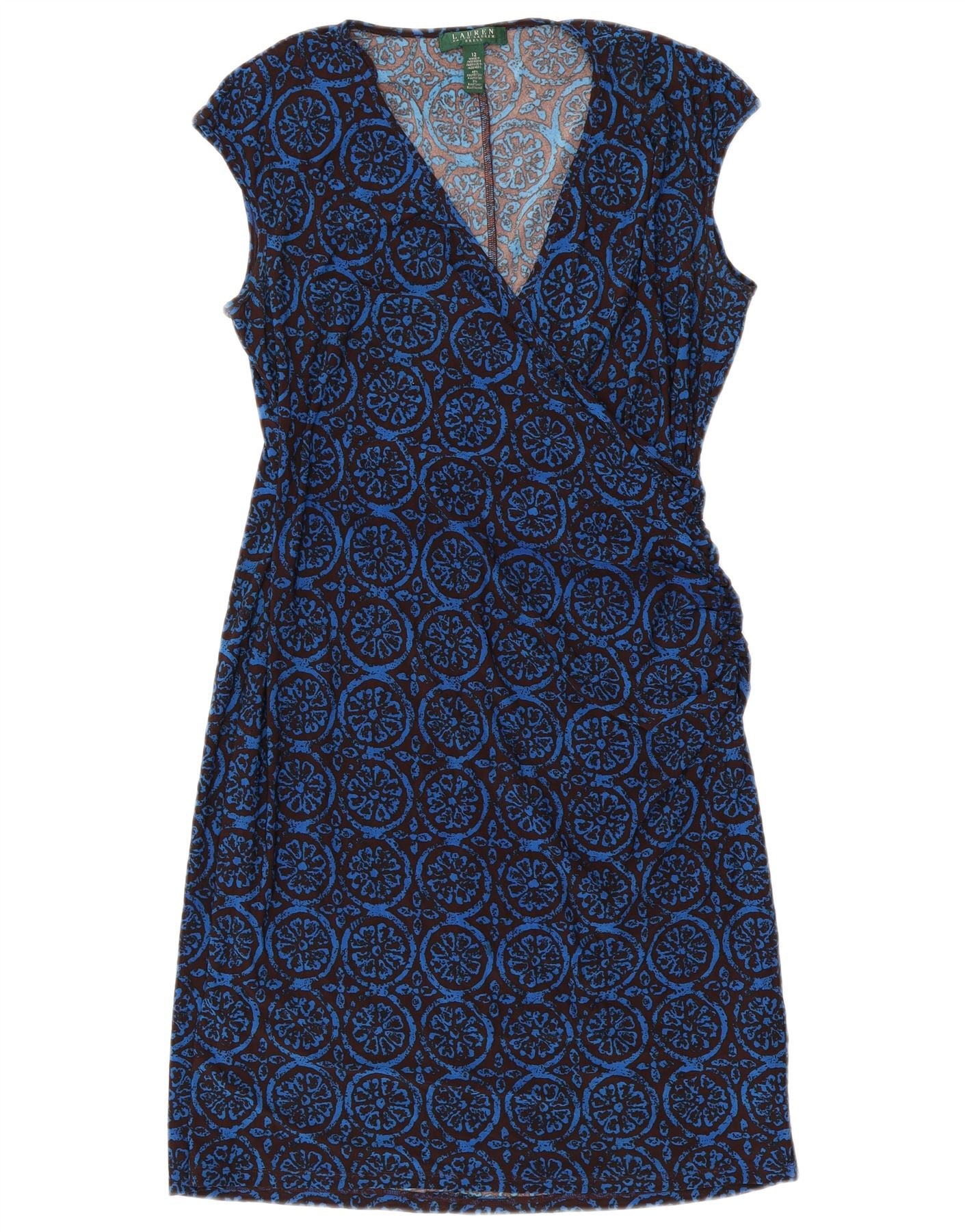 RALPH LAUREN Abito tubino senza maniche da donna US 12 Grande floreale blu