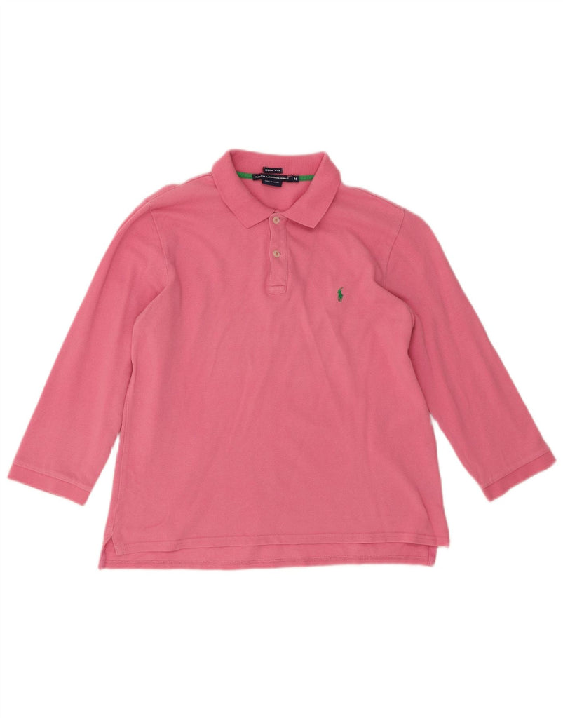 RALPH LAUREN Womens Slim Fit 3/4 Sleeve Polo Shirt UK 14 Medium Pink