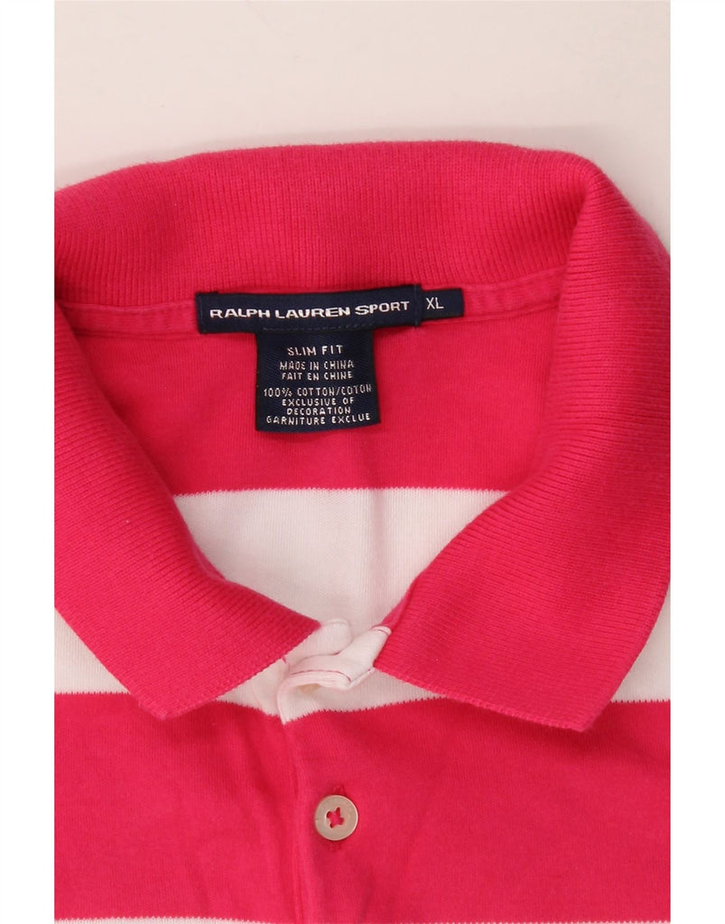 RALPH LAUREN Womens Slim Fit Polo Shirt UK 18 XL Red Striped Cotton