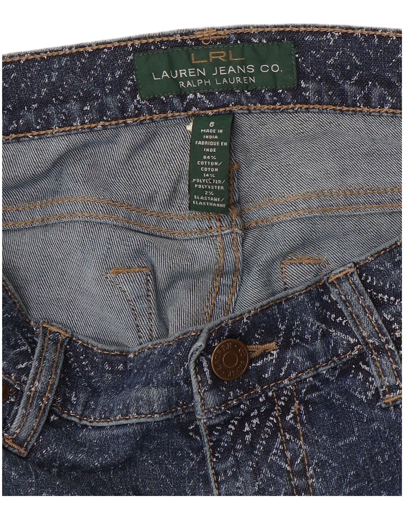 - Descrizione dell'IA: Questi jeans da donna Ralph Lauren sono realizzati in denim misto blu elasticizzato per il massimo comfort. Presentano un sottile motivo geometrico intrecciato in tutto il tessuto. La vita a vita media e la chiusura con bottoni offrono una vestibilità classica. La vestibilità regolare sulla gamba assicura una vestibilità quotidiana. Pratiche tasche completano il design.