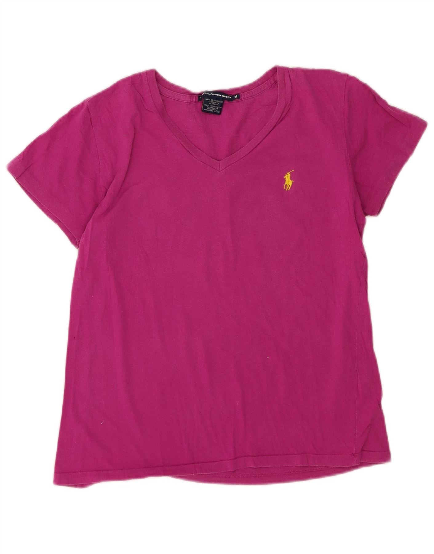 RALPH LAUREN Womens T-Shirt Top UK 12 Medium Pink Cotton