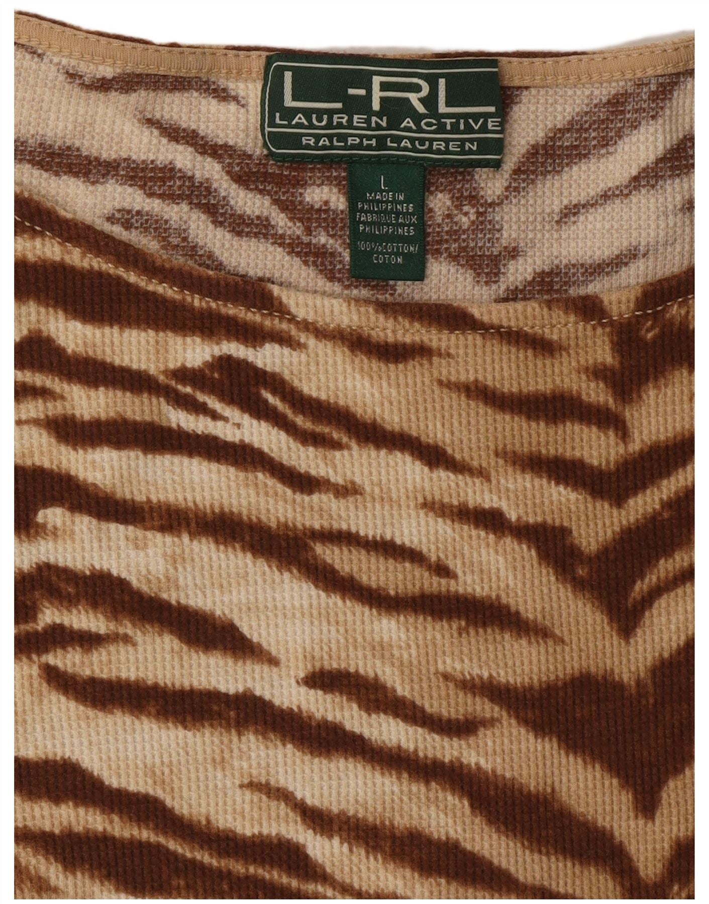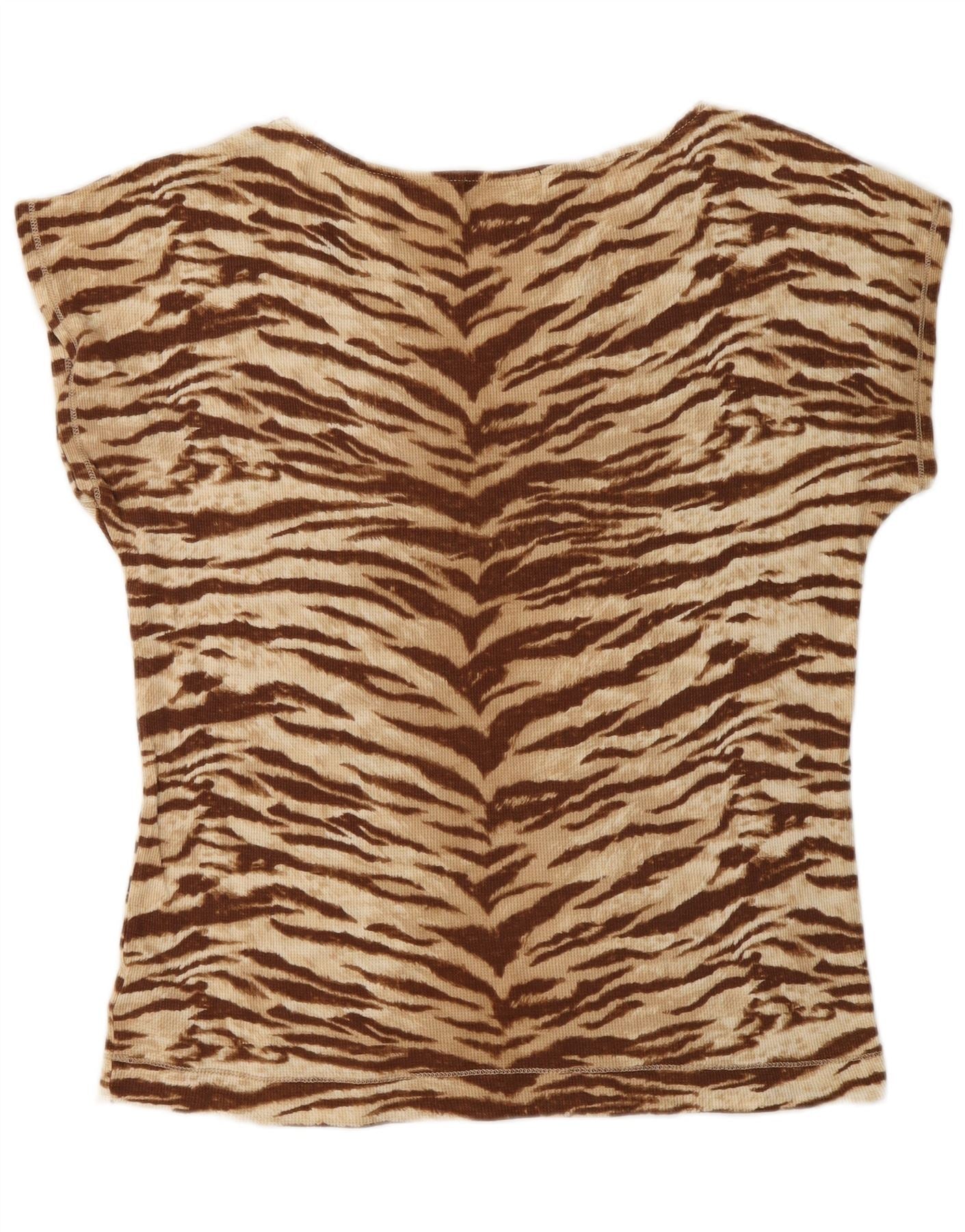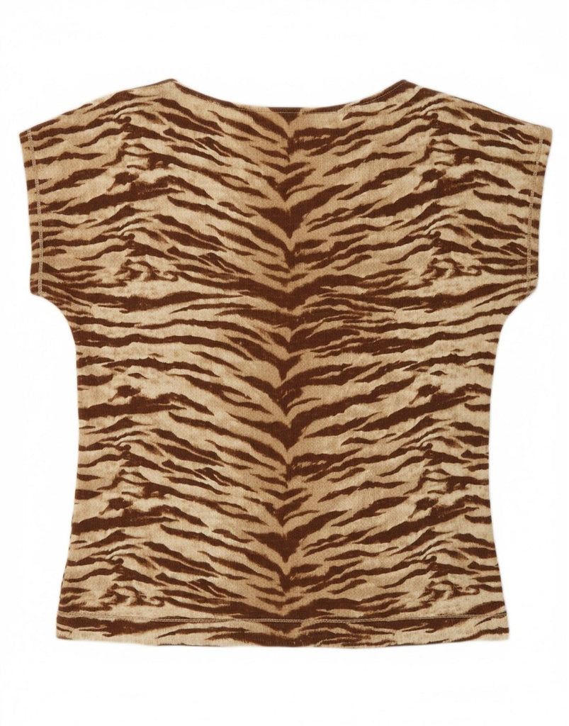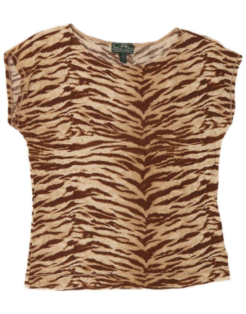 RALPH LAUREN Womens T-Shirt Top UK 16 Large Brown Animal Print Cotton