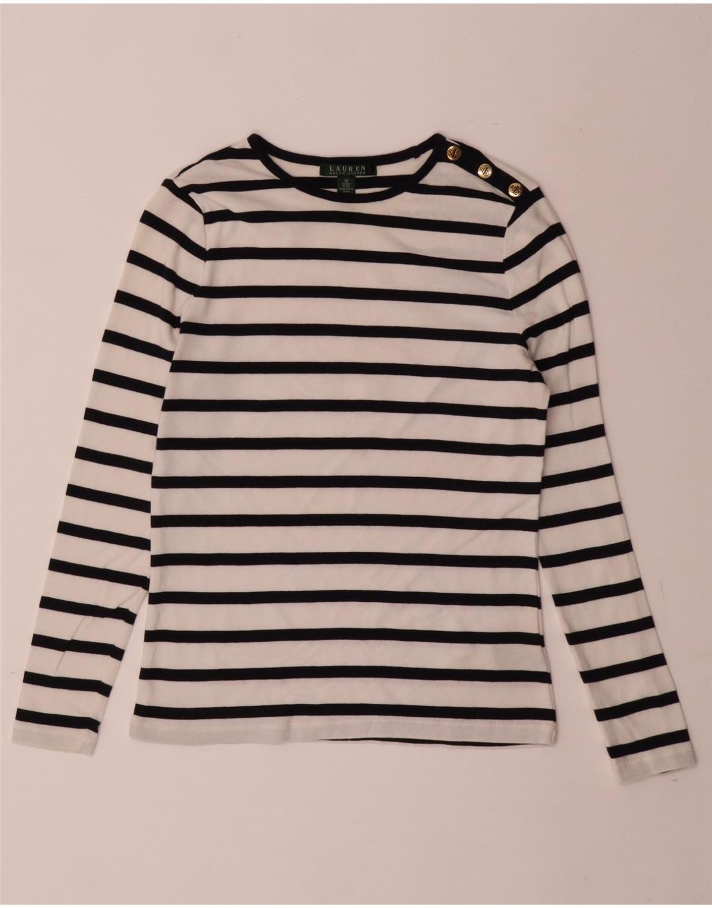 RALPH LAUREN Top da donna a maniche lunghe UK 12 Cotone a righe bianche medie