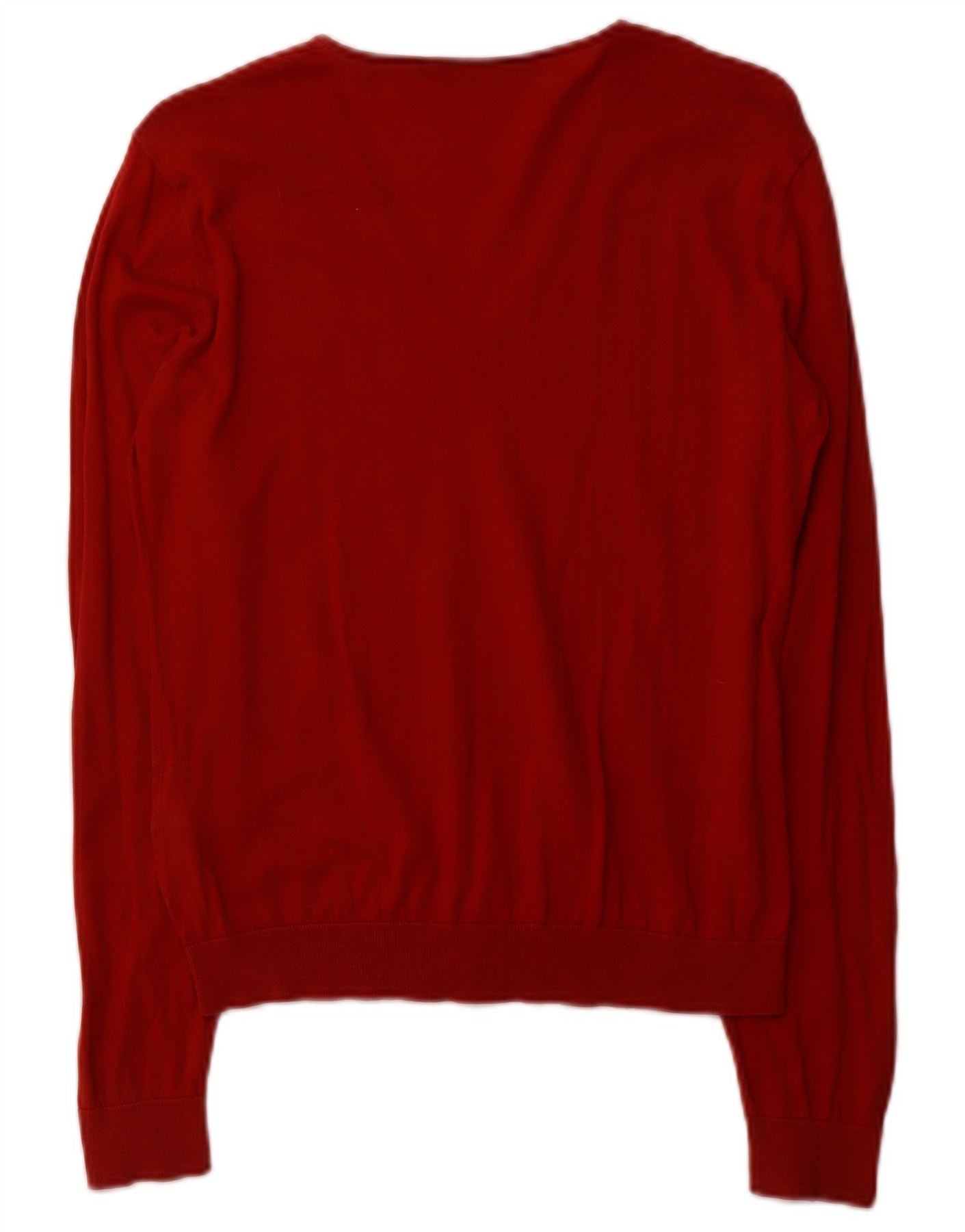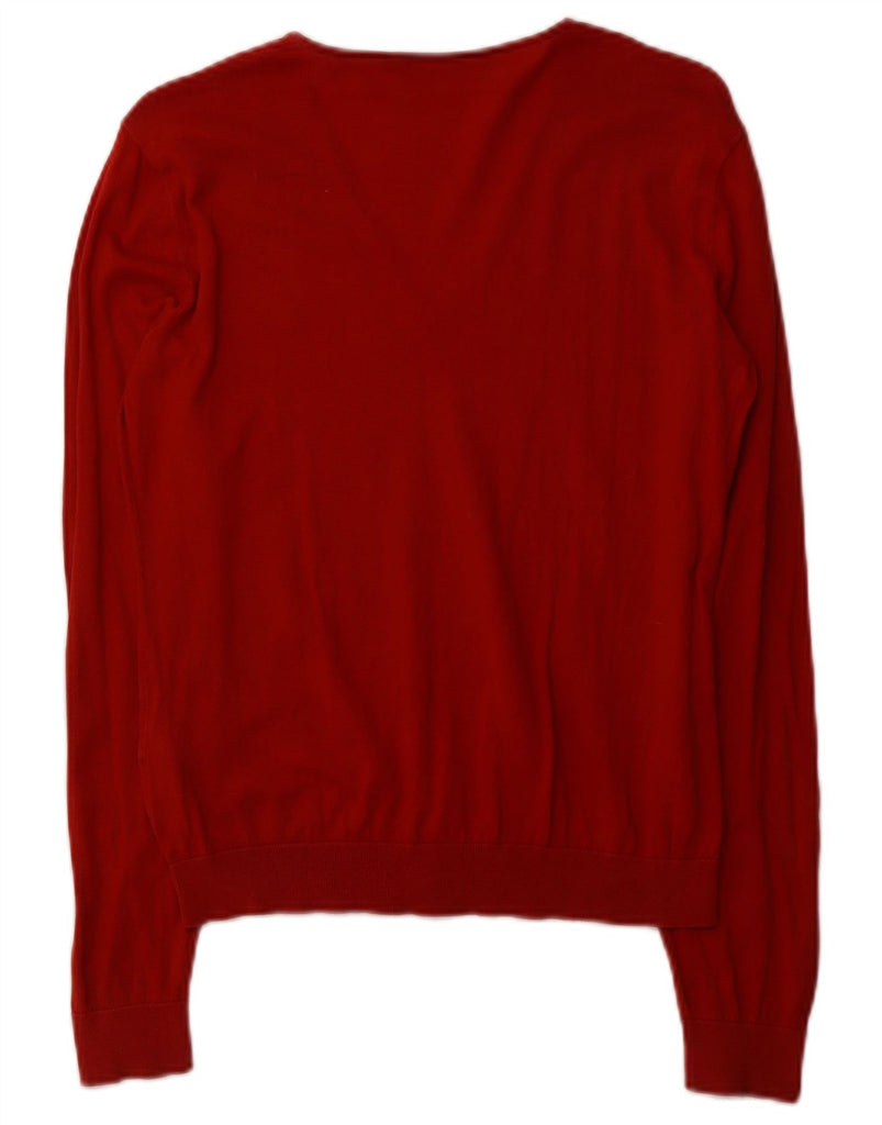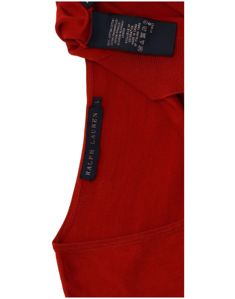 RALPH LAUREN Womens V-Neck Jumper Sweater UK 16 Large Red Cotton