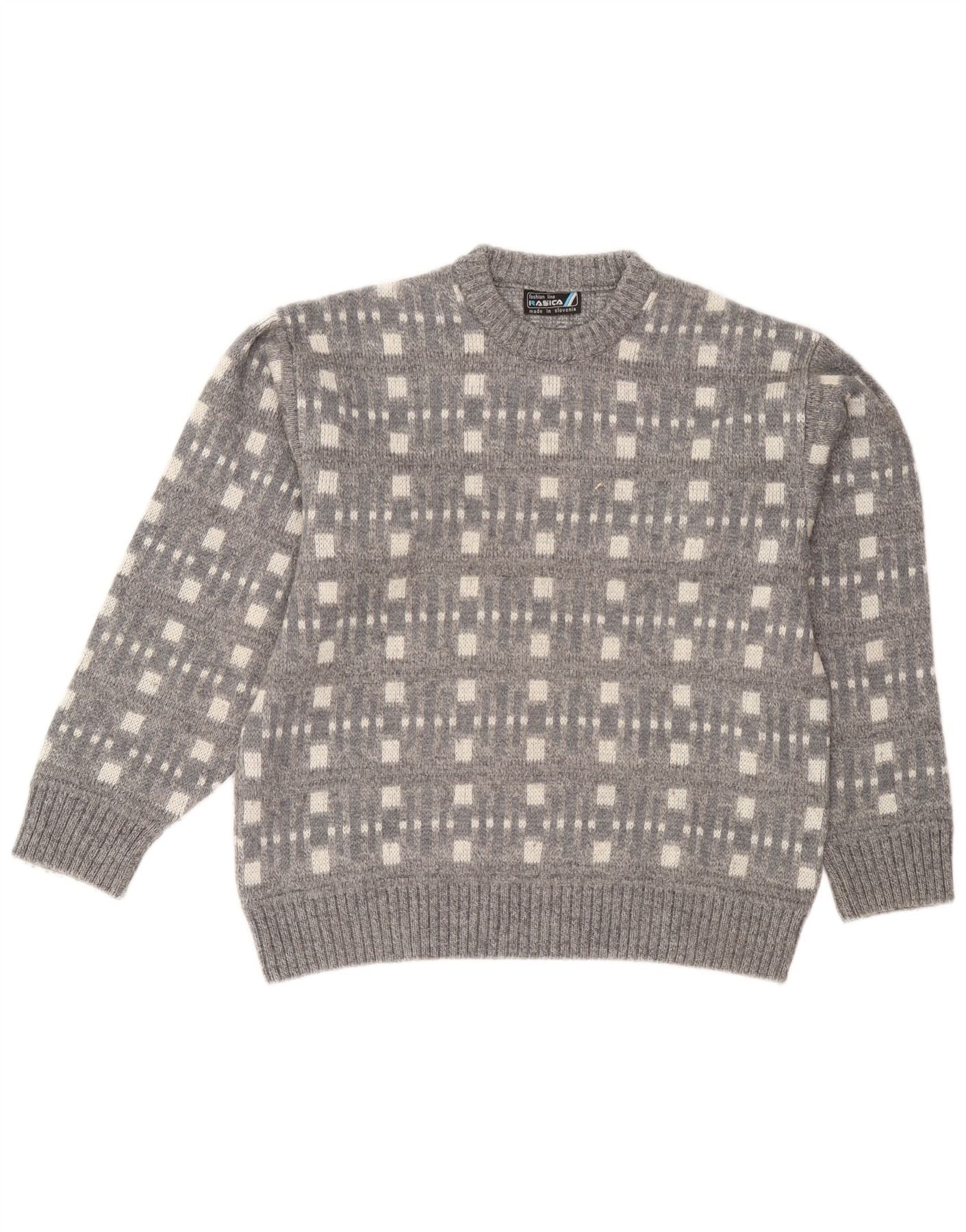 Maglione da uomo girocollo Rasica grande grigio geometrico