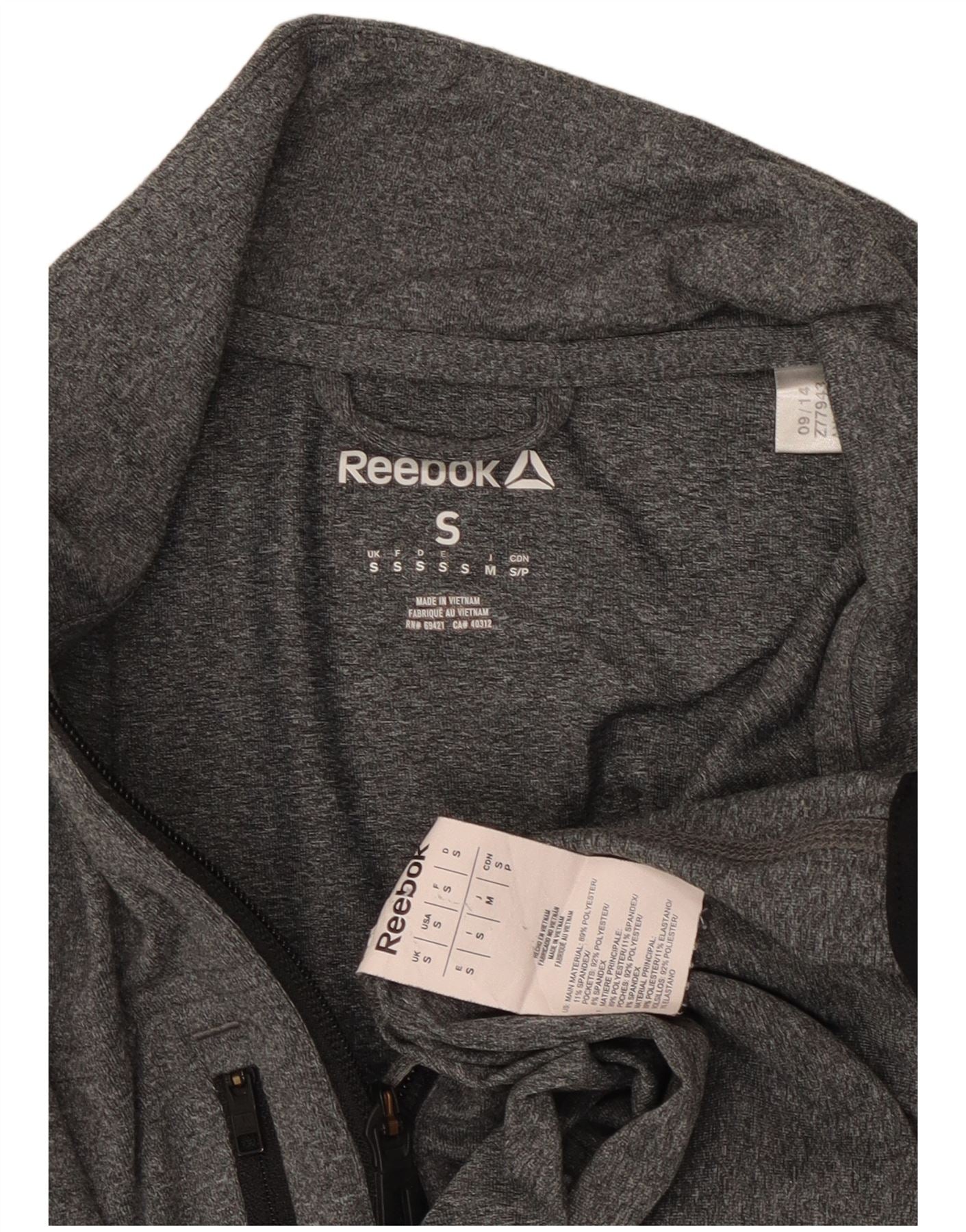 REEBOK Top da tuta pullover con zip e collo da uomo, piccolo in poliestere grigio