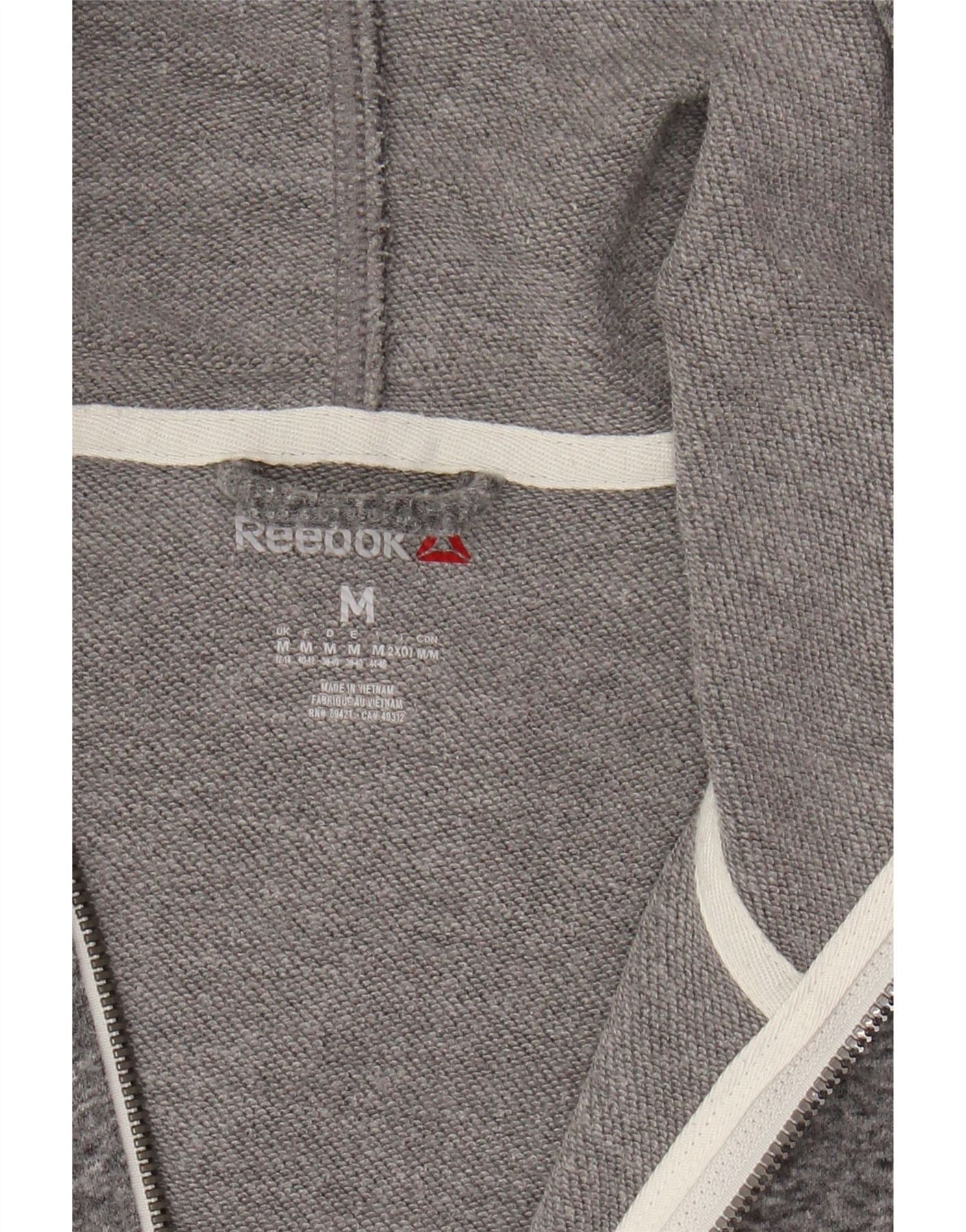 REEBOK Felpa con cappuccio con zip grafica da donna UK 12/14 Grigio medio chiazzato
