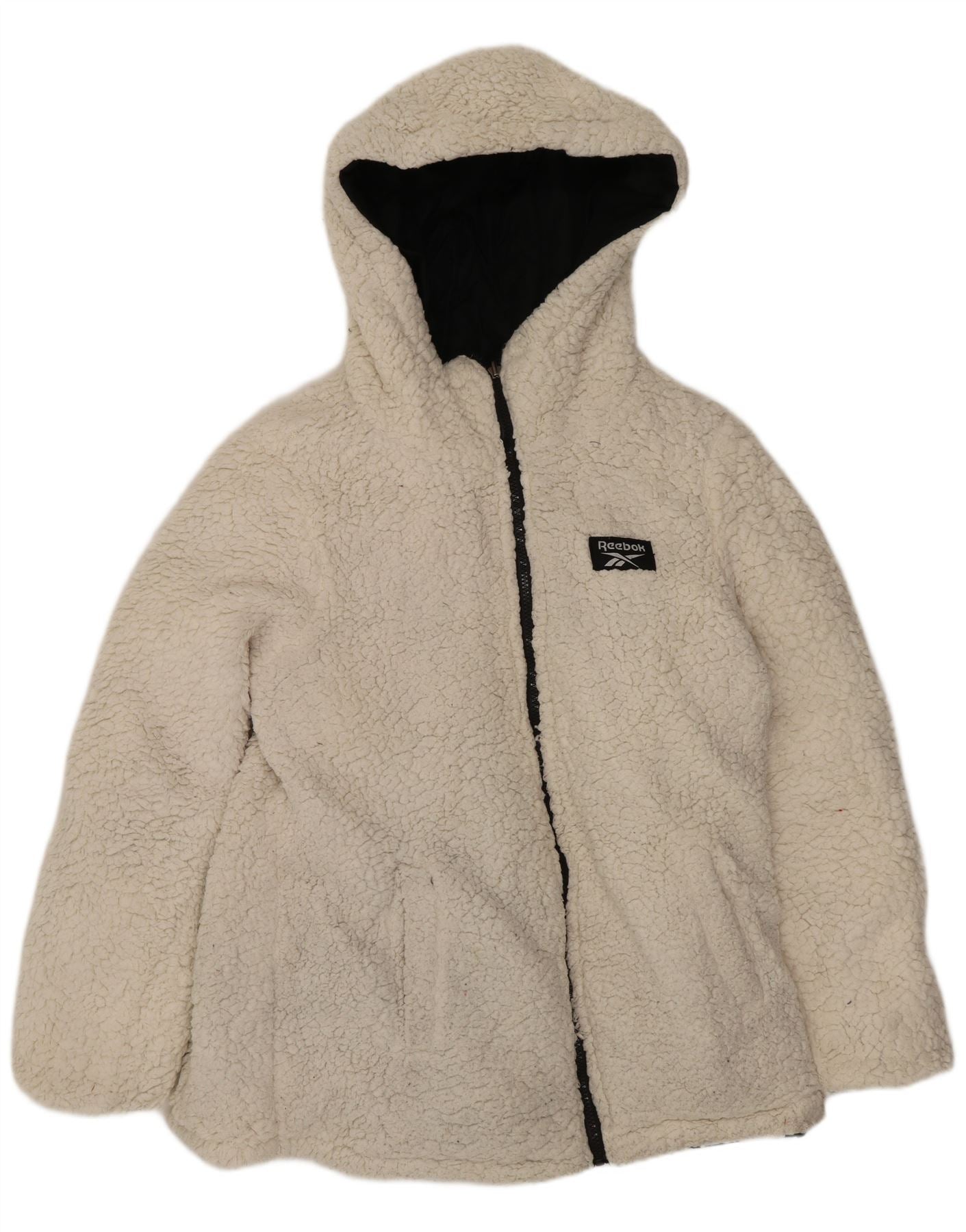- Descrizione dell'IA: Questa giacca reversibile da donna Reebok offre uno stile versatile grazie alla sua struttura in poliestere. Un lato presenta una finitura imbottita nera liscia, mentre il retro è un morbido pile bianco sporco. Vanta una comoda vestibilità regolare e un pratico design con cappuccio. Le maniche lunghe offrono un'ampia copertura. Una chiusura full zip garantisce una facile indossabilità. Il logo Reebok accentua sottilmente il design. Tasche funzionali sono incluse su entrambi i lati.