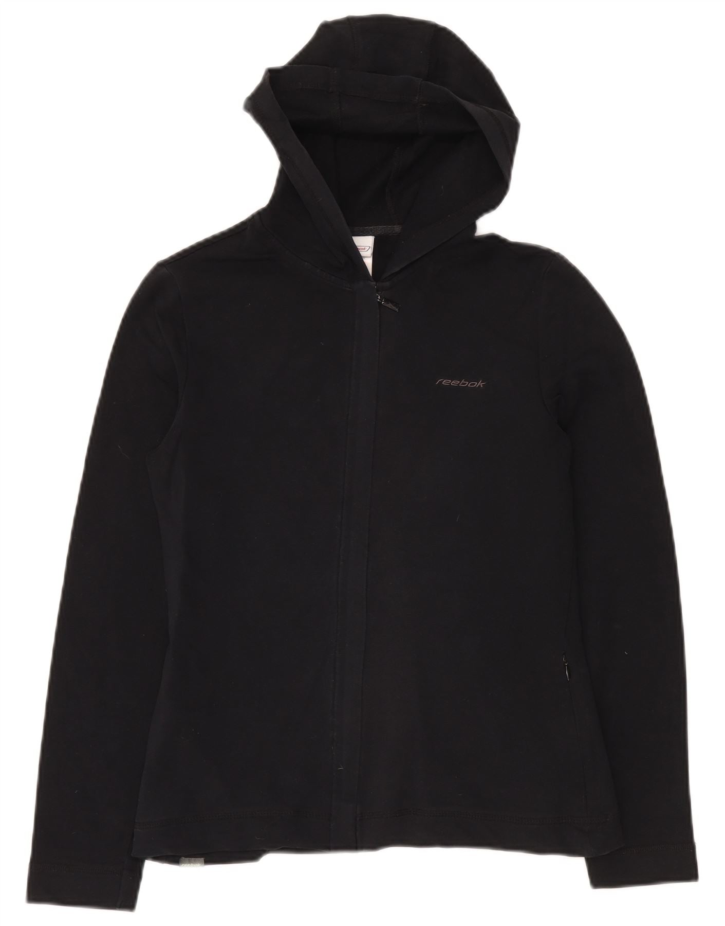 Maglione con cappuccio e zip da donna REEBOK UK 10 piccolo cotone nero
