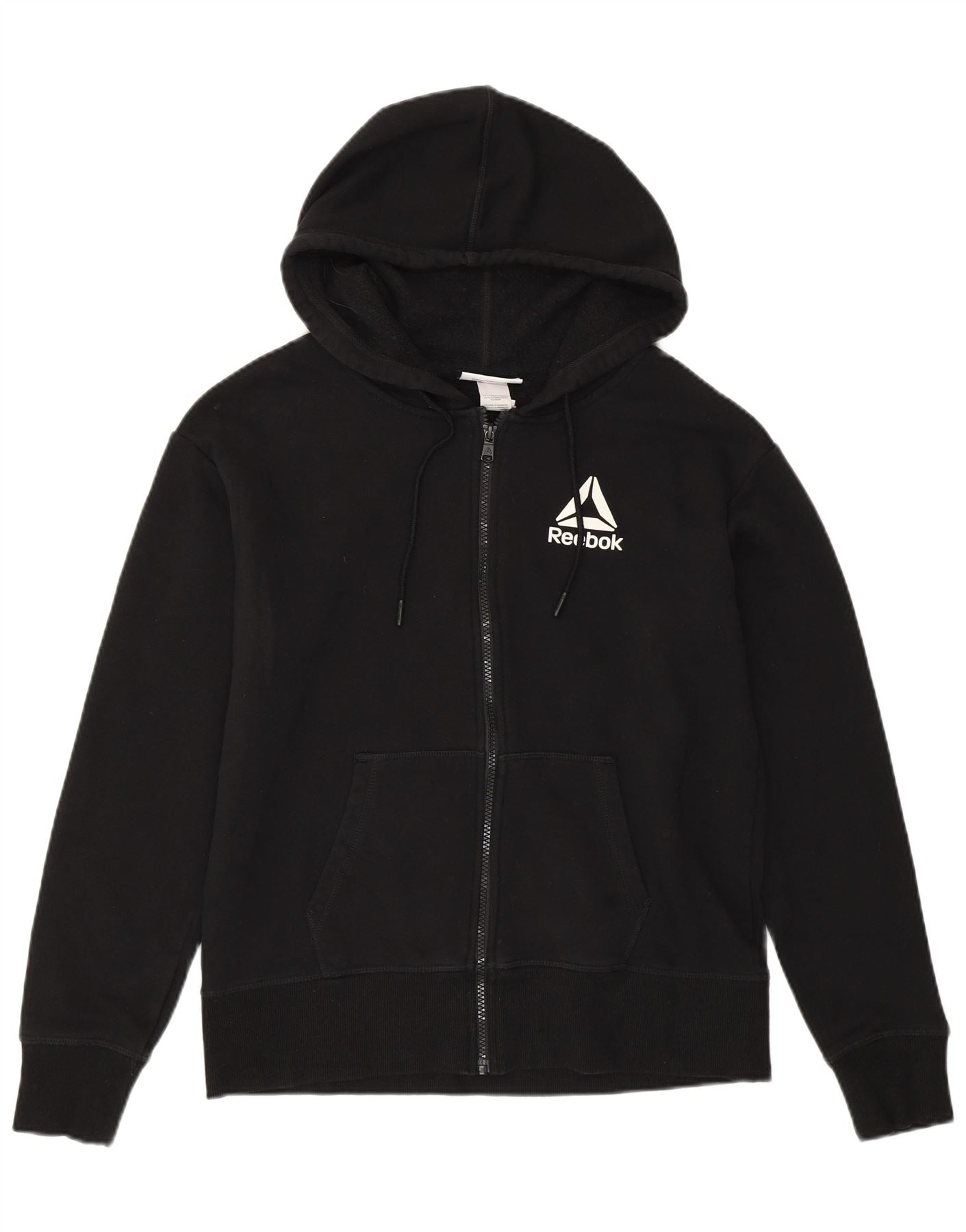 Maglione con cappuccio e zip da donna REEBOK UK 14 cotone nero medio
