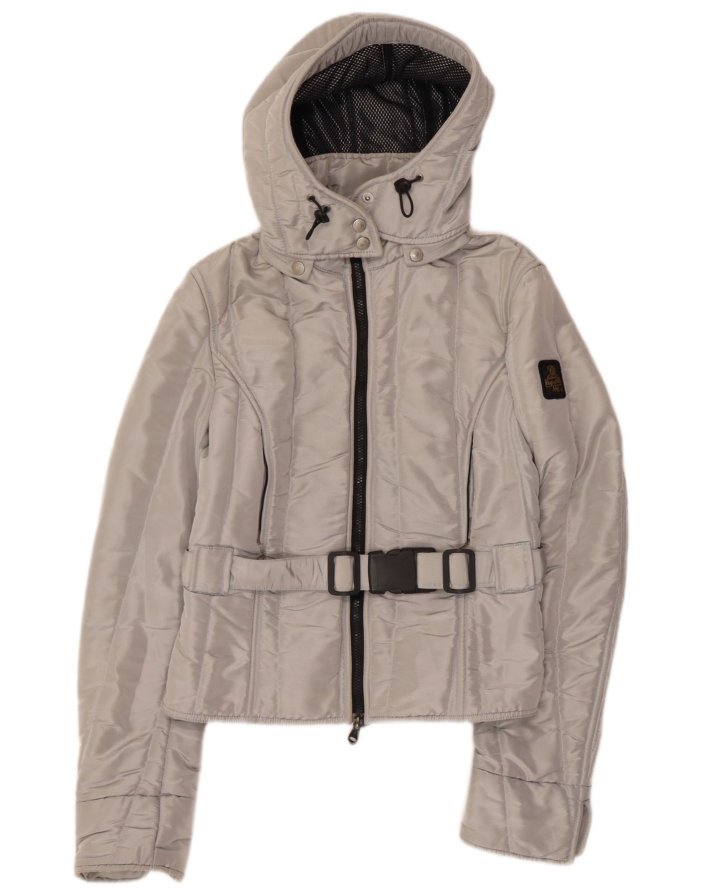 REFRIGIWEAR Giubbotto bomber con cappuccio Cruz da donna UK 14 Large Argento Poliestere