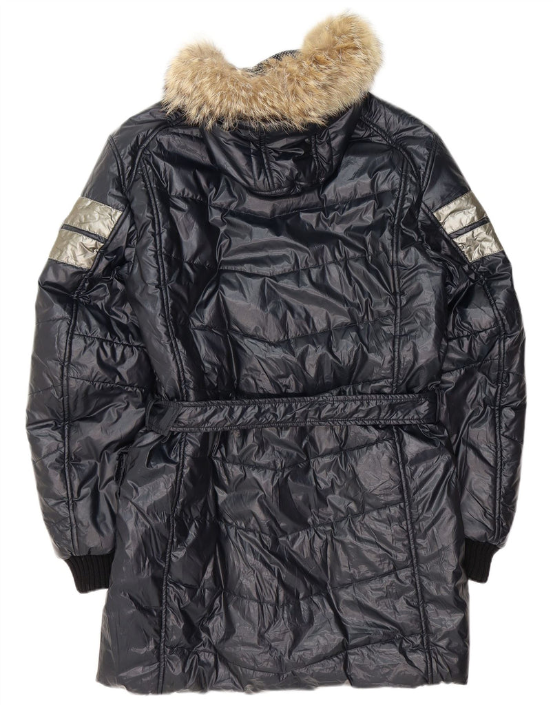 REFRIGIWEAR Womens Hooded Padded Coat UK 16 Large Black Colourblock