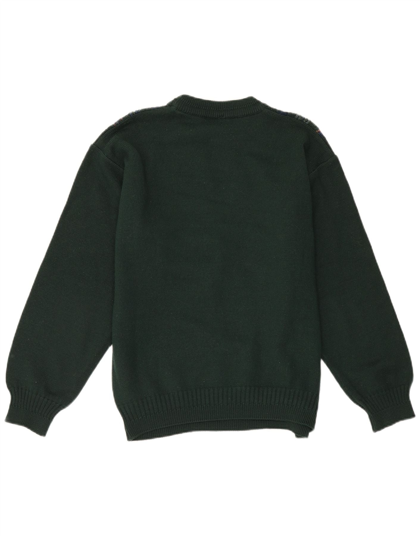 RENATO CAVALLI Mens Crew Neck Jumper Sweater Medium Green Argyle/Diamond