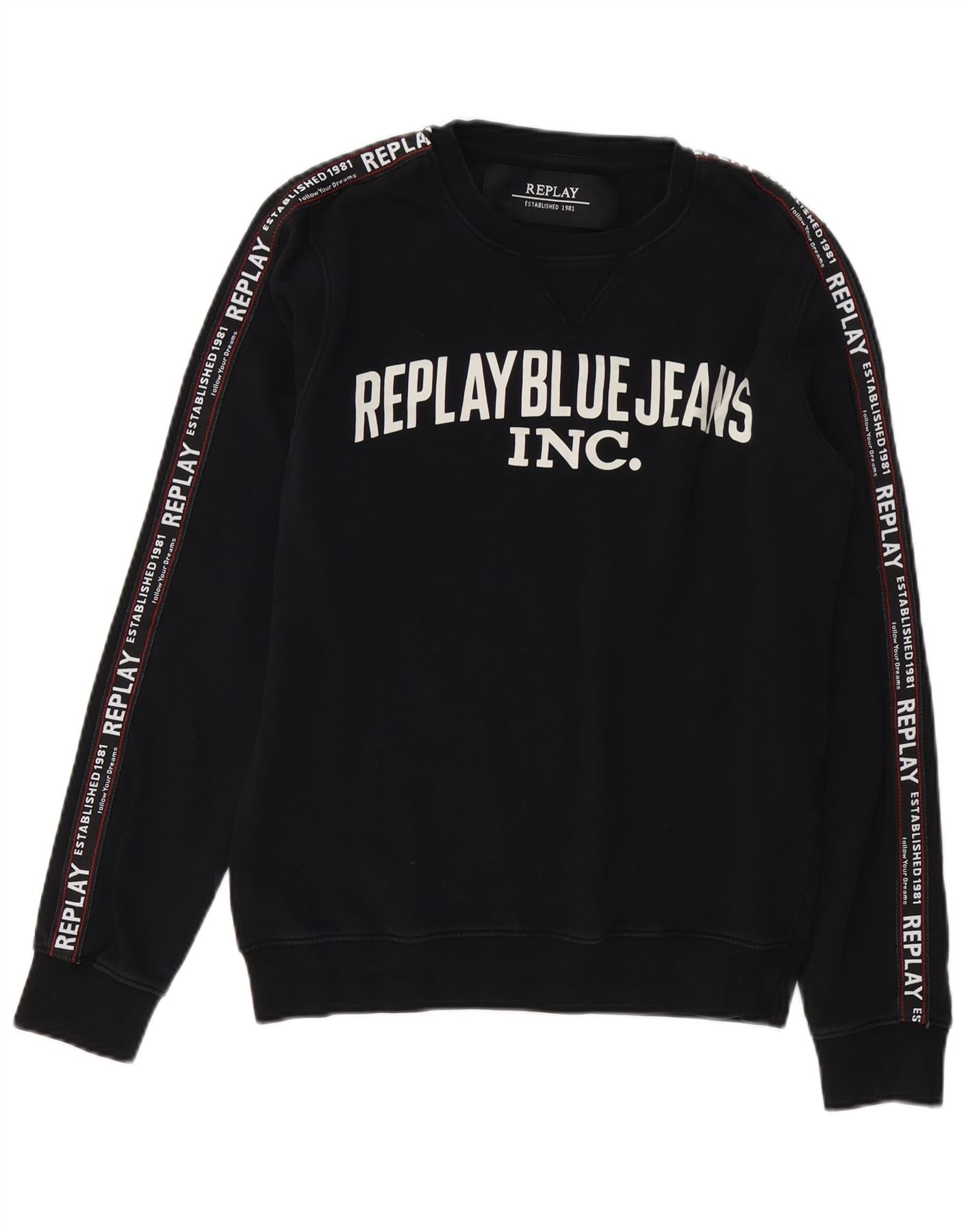 REPLAY Felpa grafica da uomo Maglione medio cotone nero