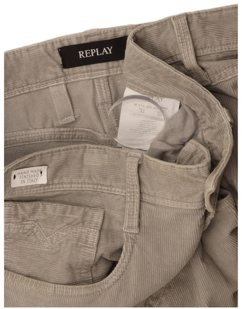 REPLAY Pantaloni slim da uomo in velluto a coste W33 L32 in cotone grigio