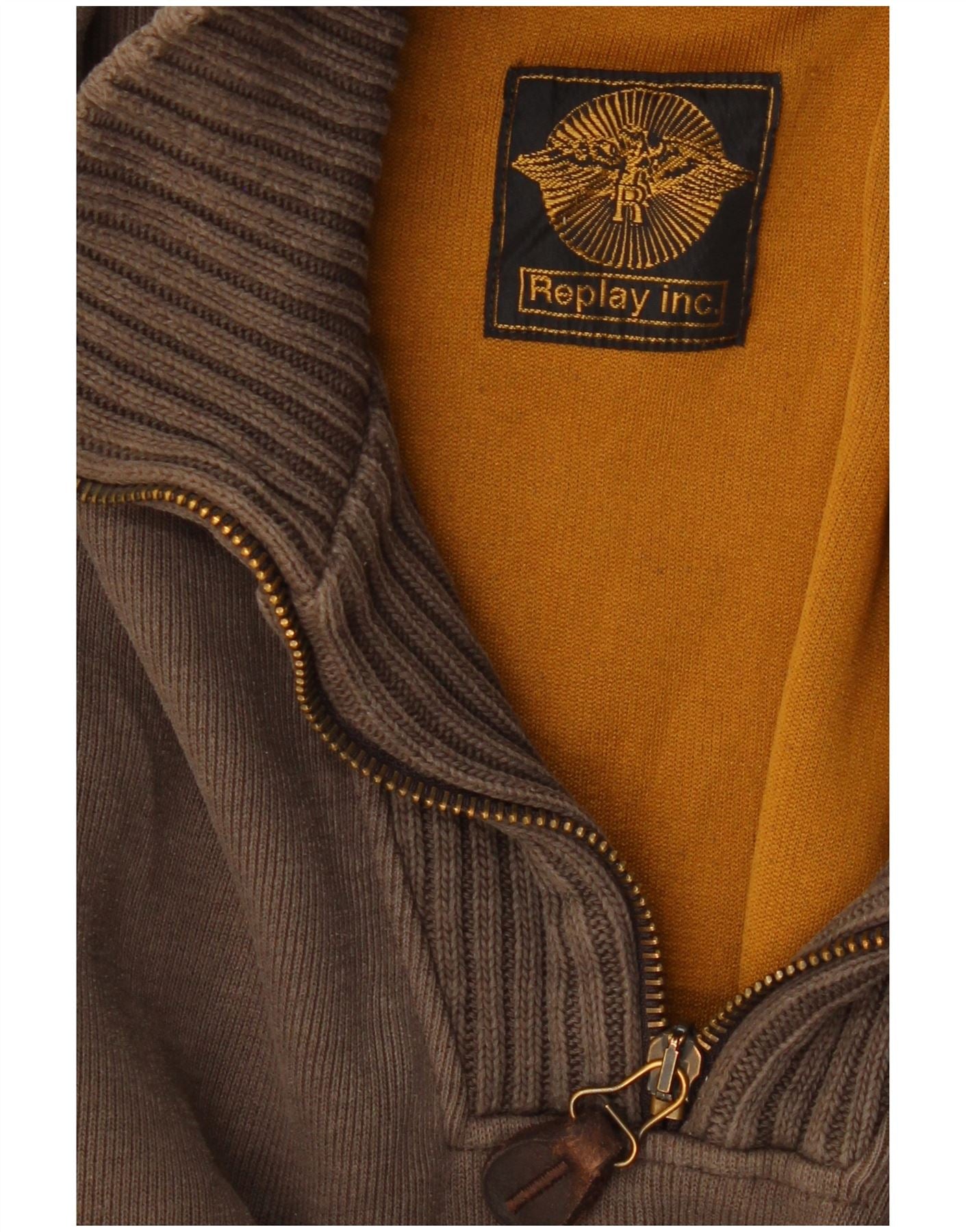 REPLAY Maglione da uomo con collo con zip grigio medio
