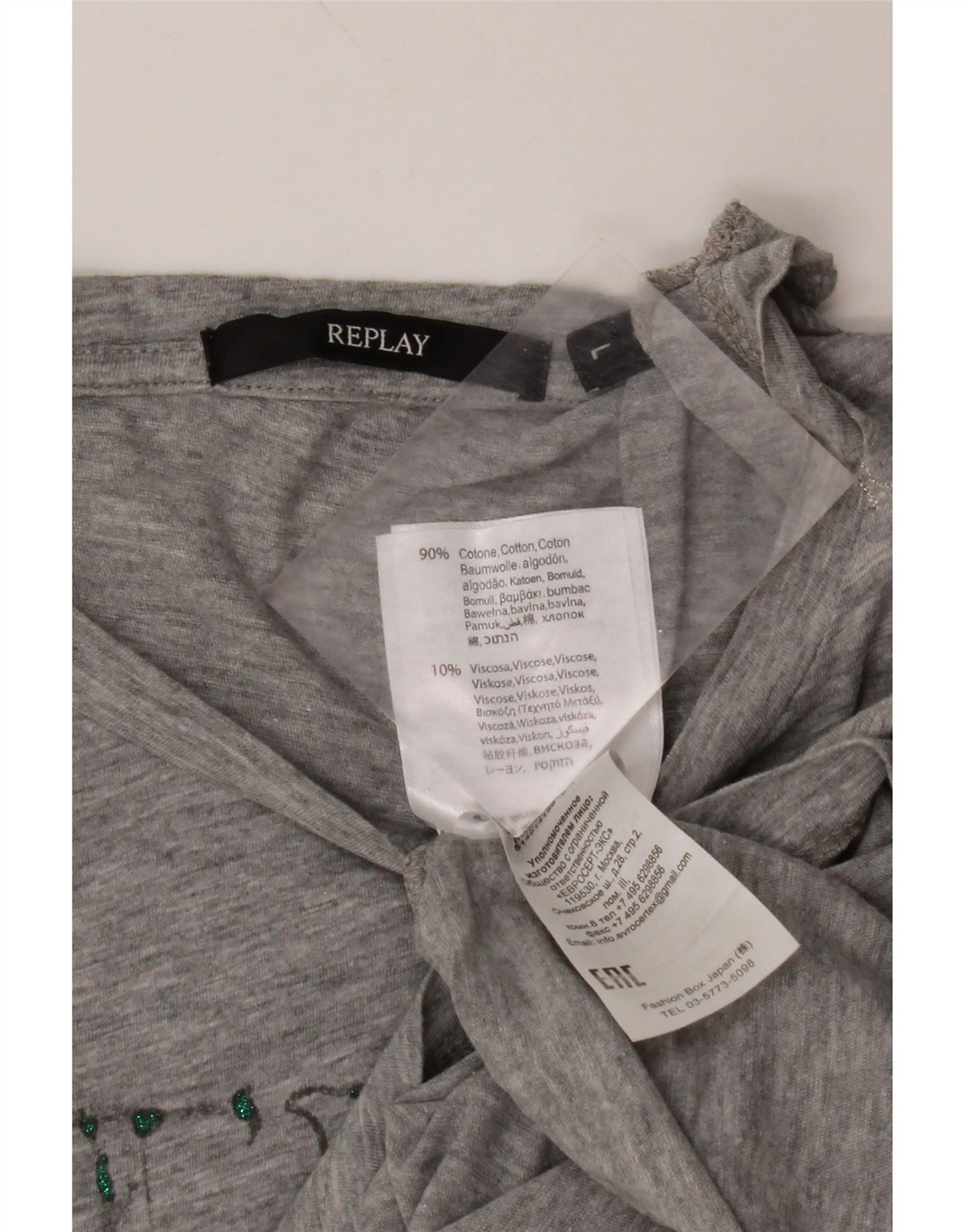 REPLAY T-shirt grafica da donna Top UK 16 grande cotone grigio
