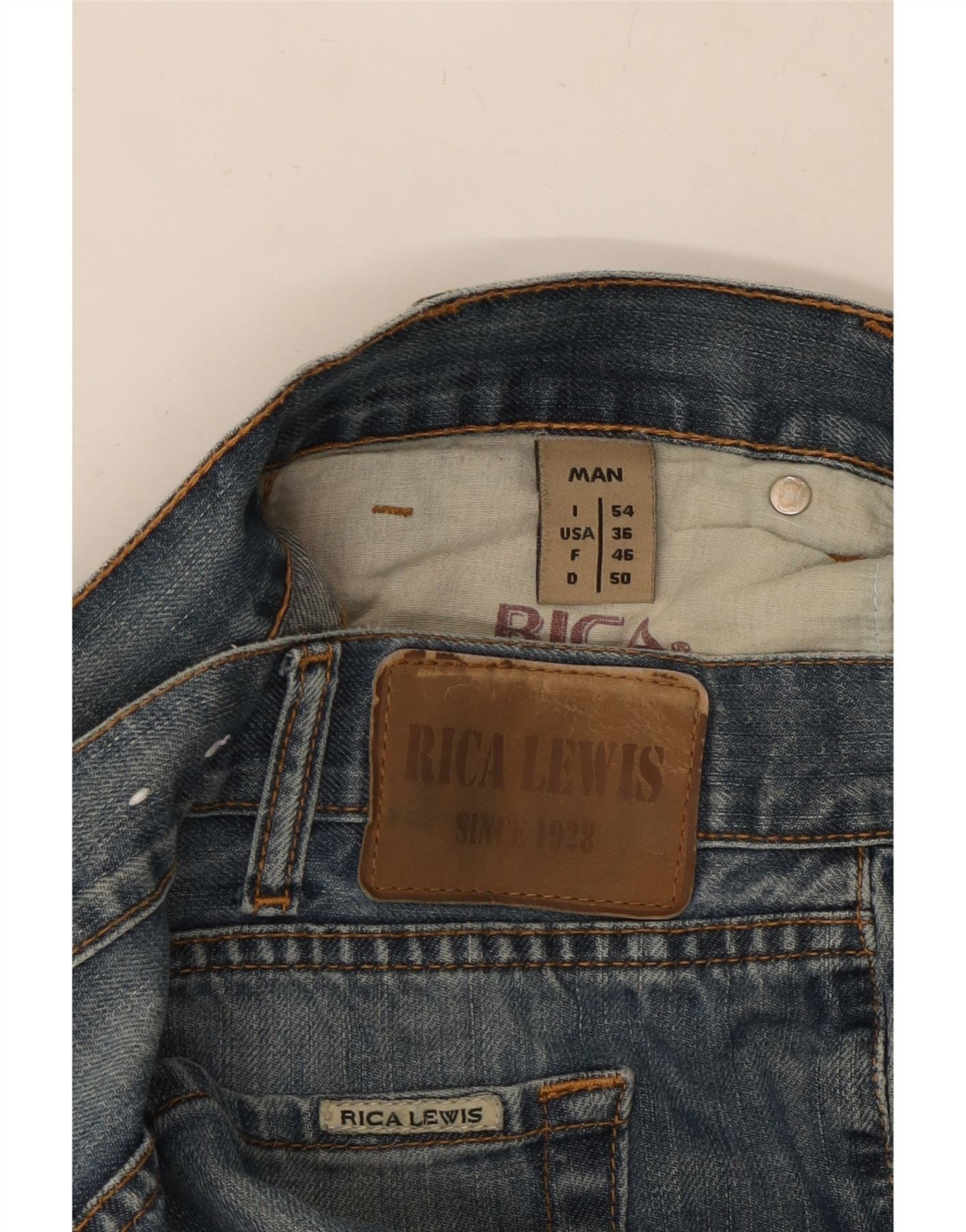- Descrizione dell'IA: Questi jeans dritti da uomo Rica Lewis sono realizzati in classico denim blu con un lavaggio delicato. Presentano una vestibilità regolare sulla gamba per un uso confortevole. Una chiusura con zip garantisce una parte anteriore liscia. Il taglio dritto offre una silhouette senza tempo. Pratiche tasche sono incluse per la funzionalità. Un accento con logo marchiato aggiunge un tocco distintivo.