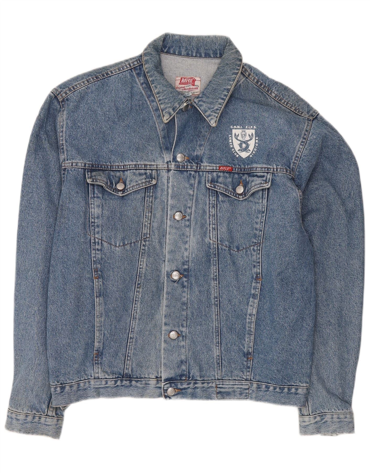 Giacca in denim grafico da uomo Rifle UK 44 2XL Blu retrò