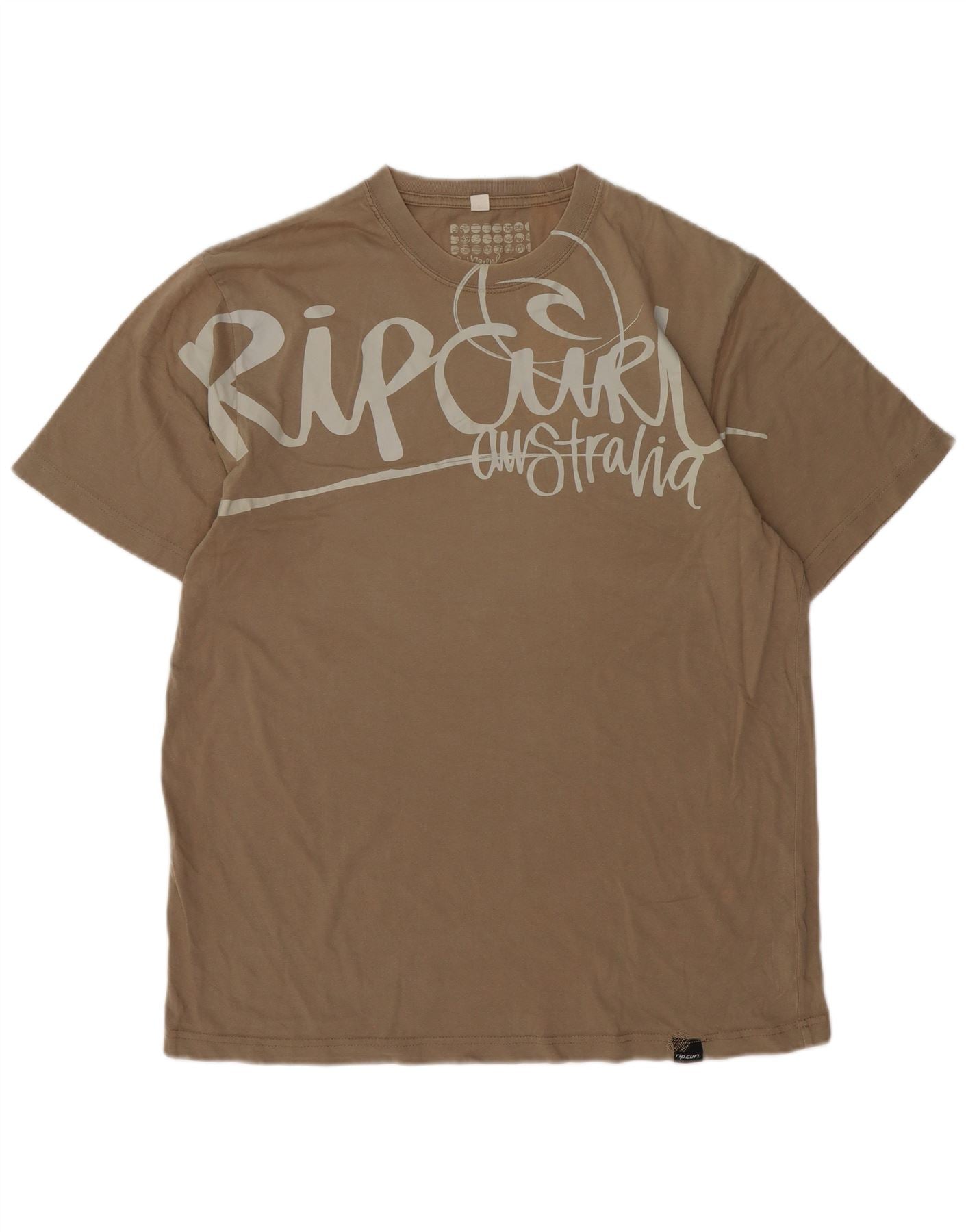 RIP CURL Mens Australia Graphic T-Shirt Top Large Beige Cotton