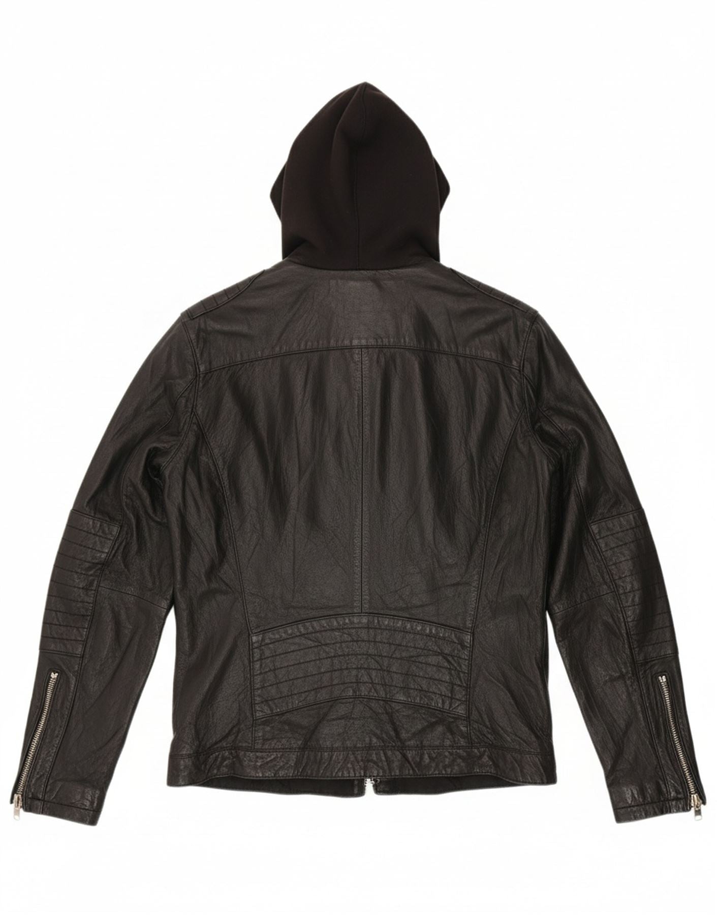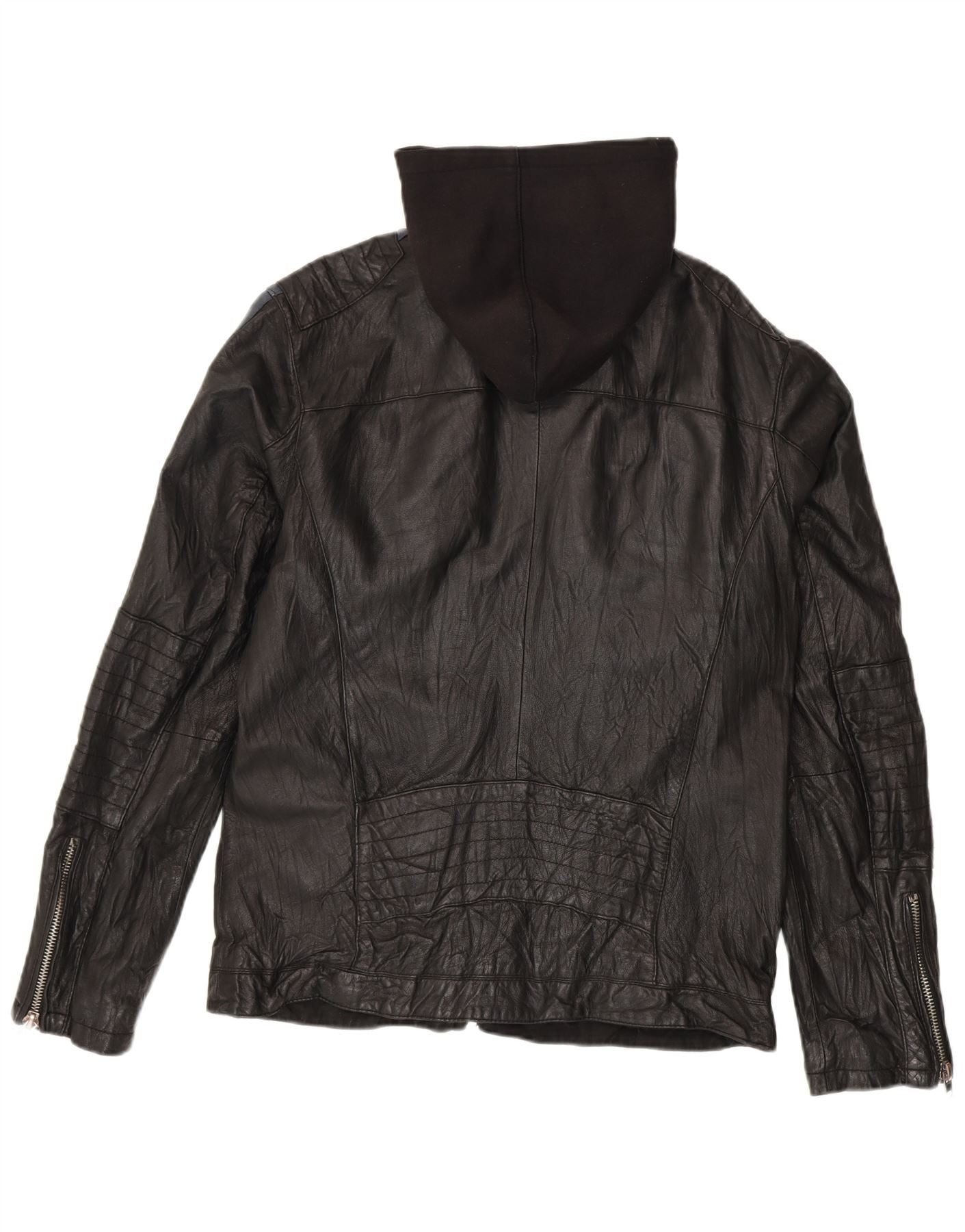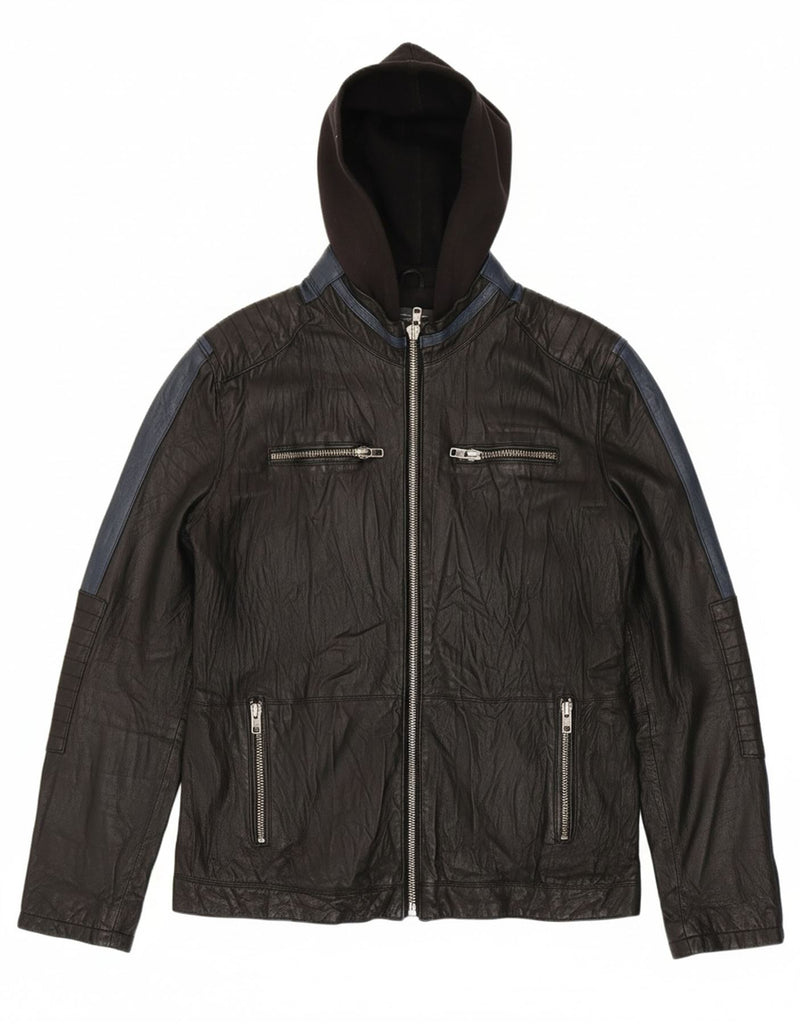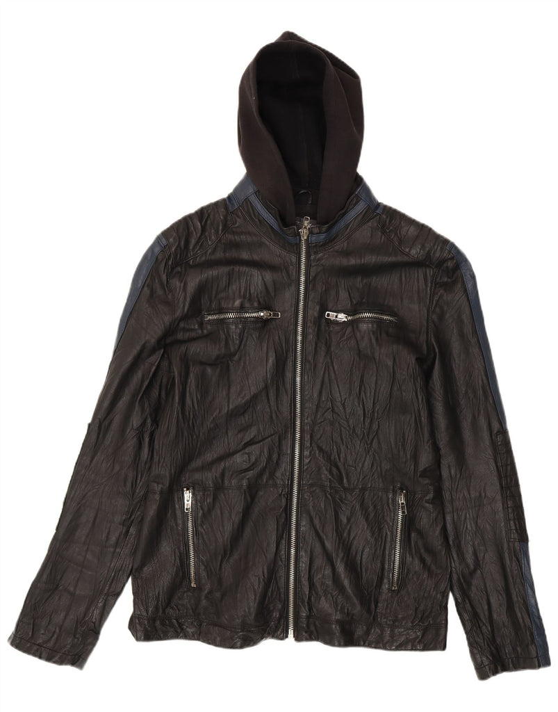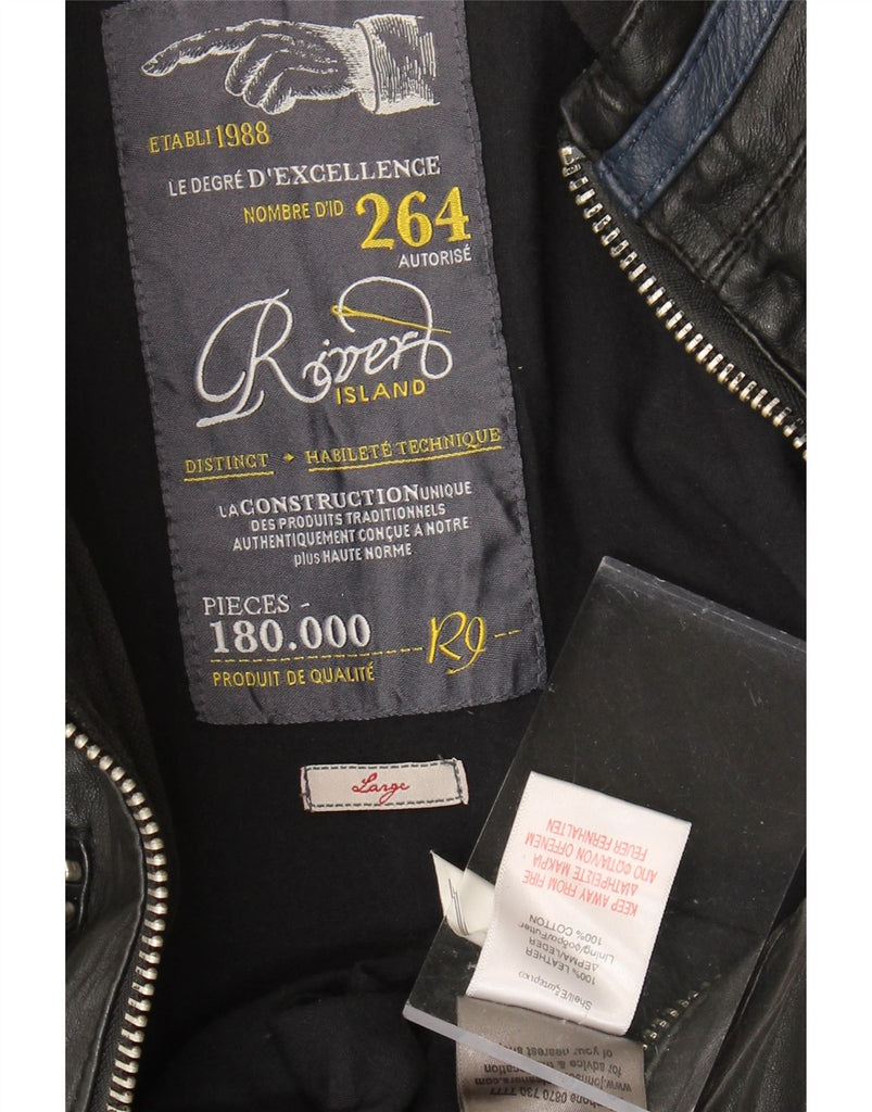 RIVER ISLAND Mens Zip Jacket UK 40 Large Black Colourblock Leather Biker