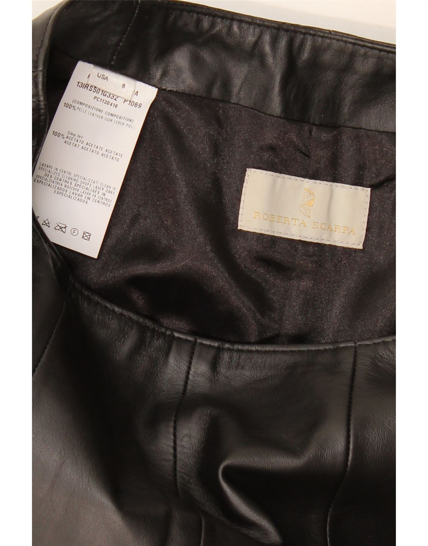 ROBERTA SCARPA Gonna a vita alta da donna US 6 media W26 in pelle nera