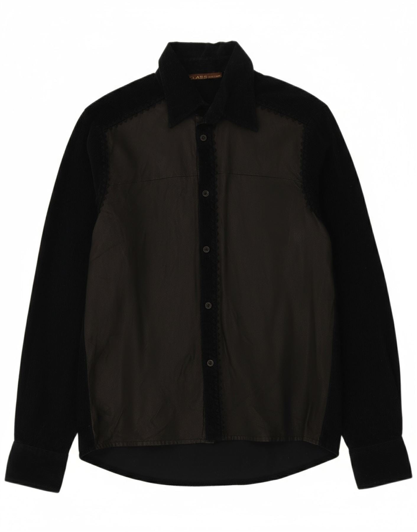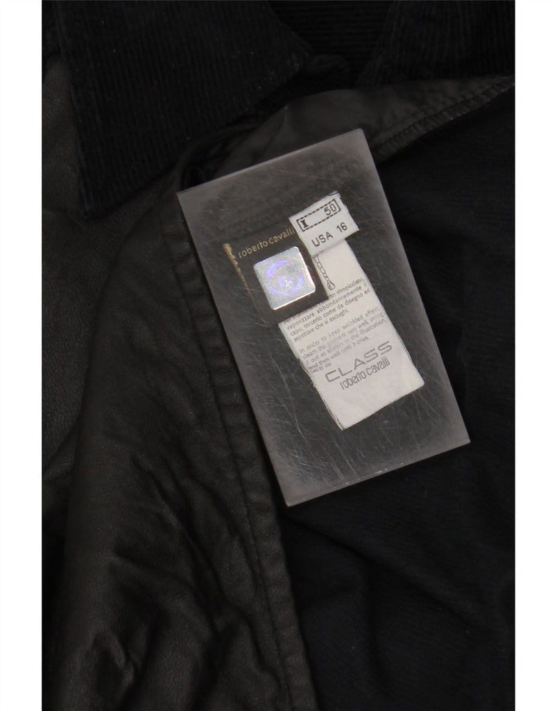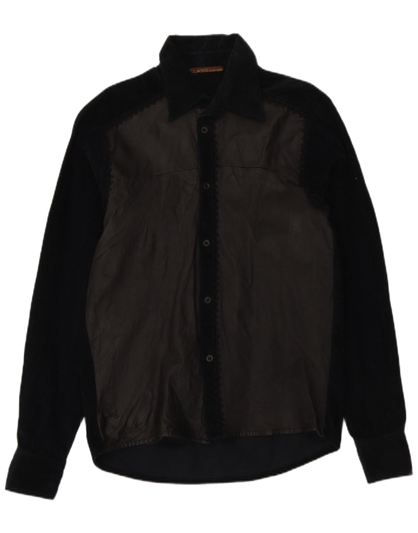 ROBERTO CAVALLI Mens Leather Shirt IT 50 Medium Navy Blue Leather