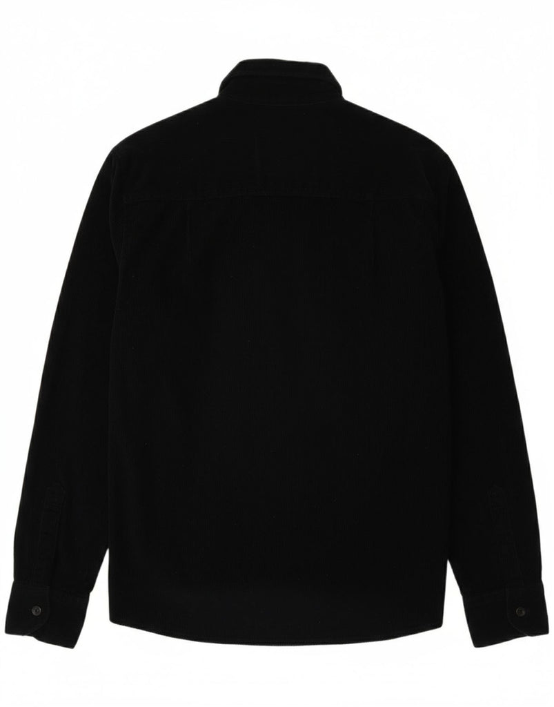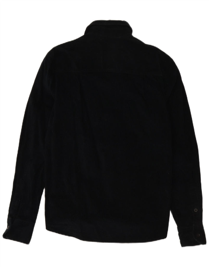 - AI Description: This Roberto Cavalli mens shirt is crafted from black corduroy, presenting a rich, textured finish. It features a classic collared neckline and a full button-up front for a timeless appeal. Long sleeves taper neatly, complementing the regular fit for comfortable wear. Practical pockets add functional detail to this refined garment.