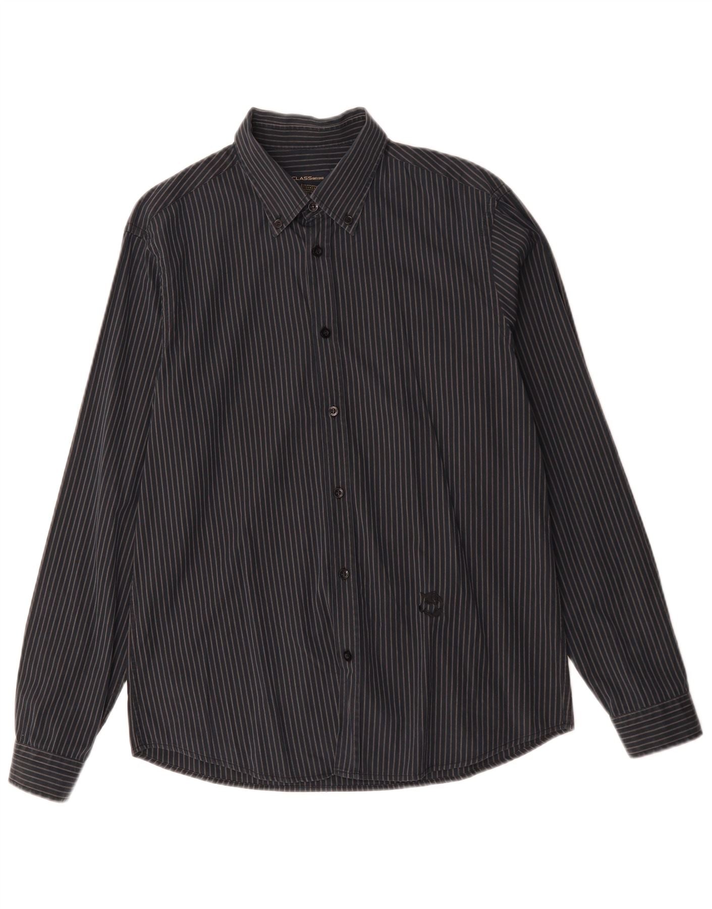 ROBERTO CAVALLI Camicia Uomo Media Blu Navy Gessato